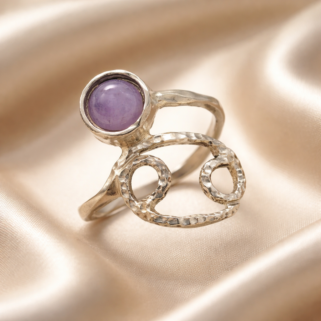 טבעת זהב לבן מזלות ואבן לידה