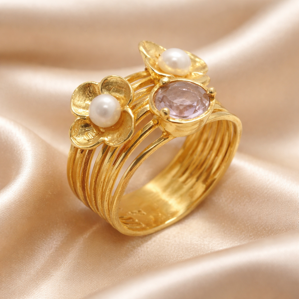 ומשני צדדיה פרחים קטנים ועדינים משובצים פנינה לבנה קטנטנה