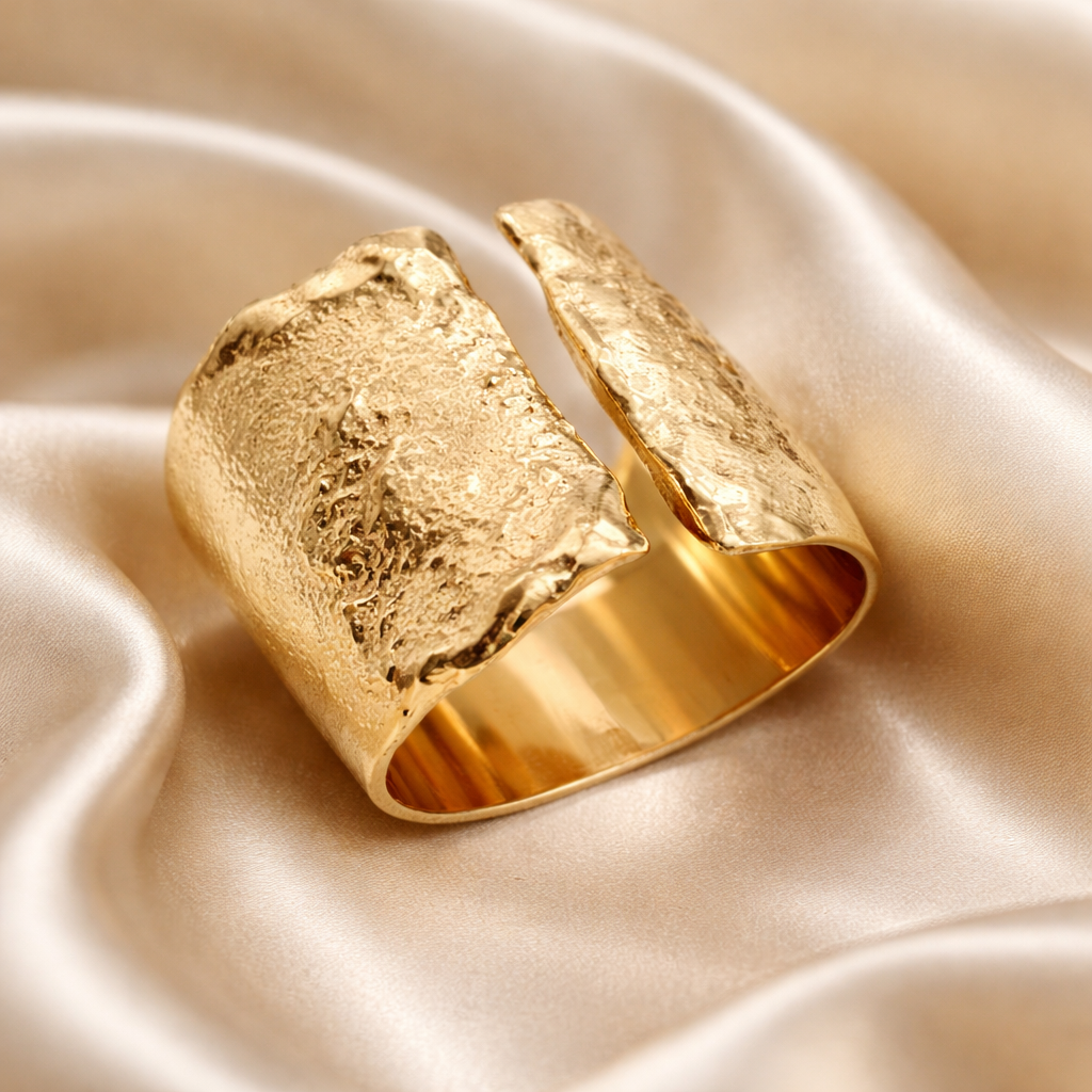 טבעת זהב 14 קראט רחבה ומיוחדת