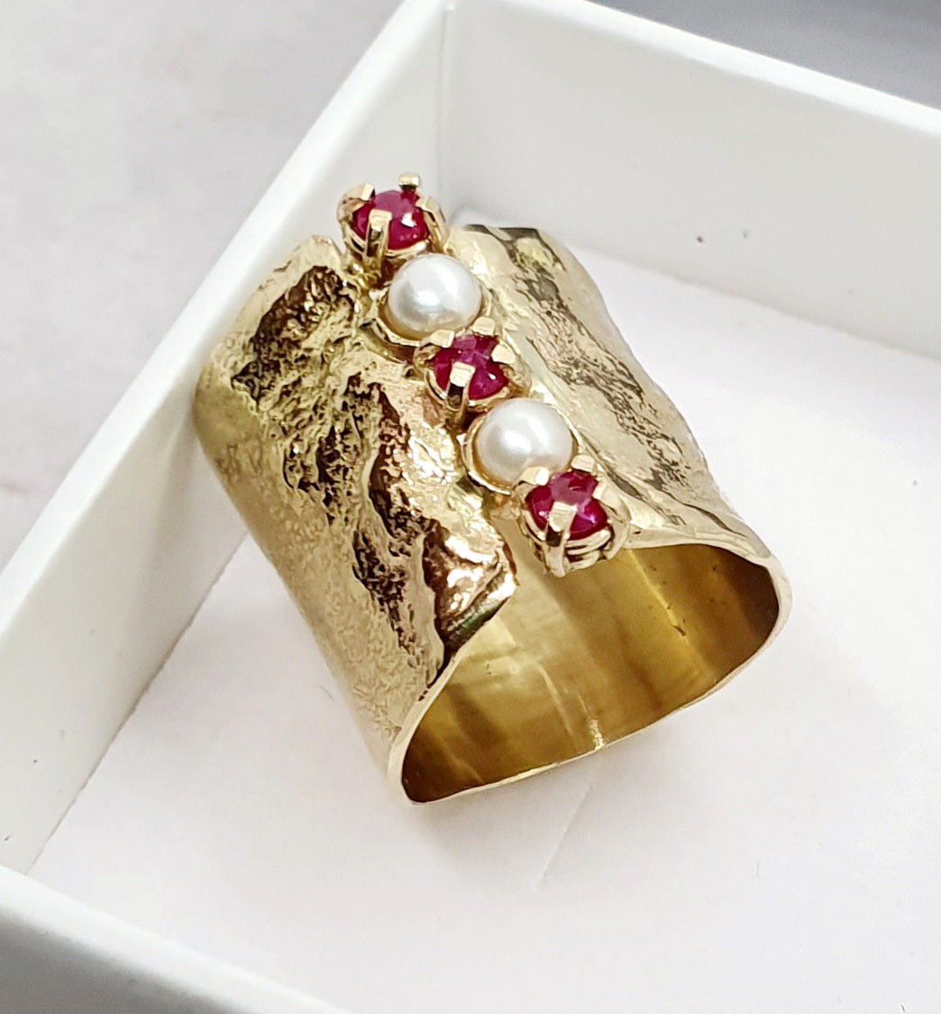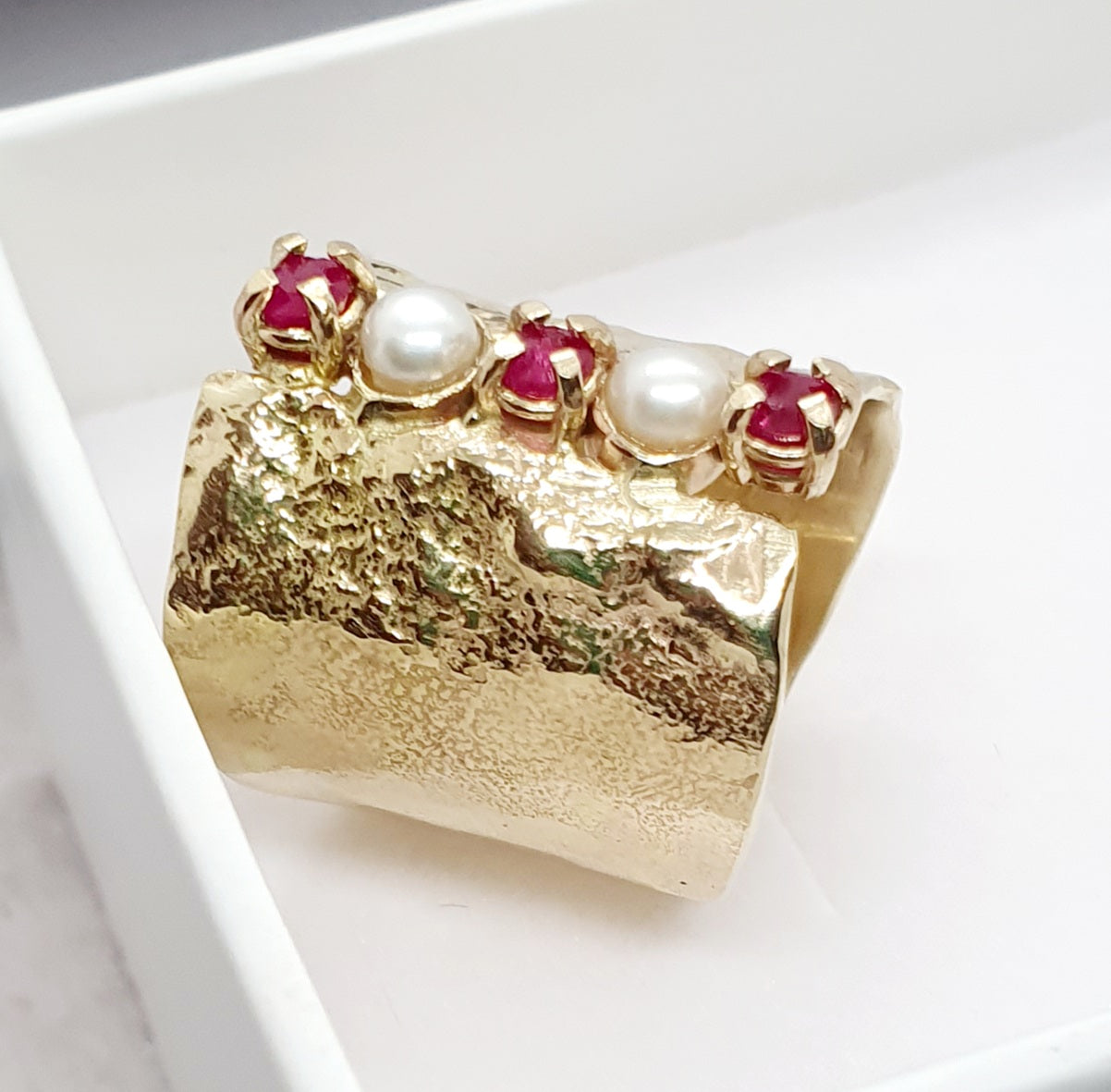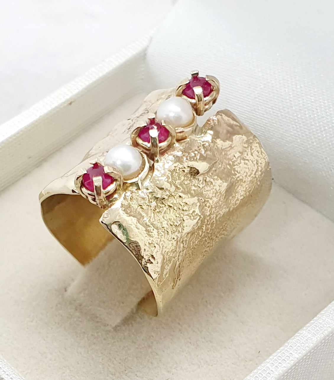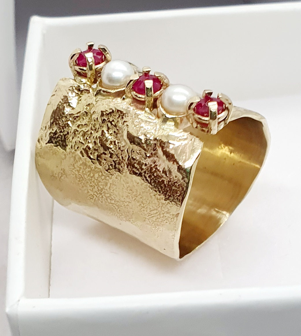 טבעת זהב 14 קראט רחבה ומיוחדת