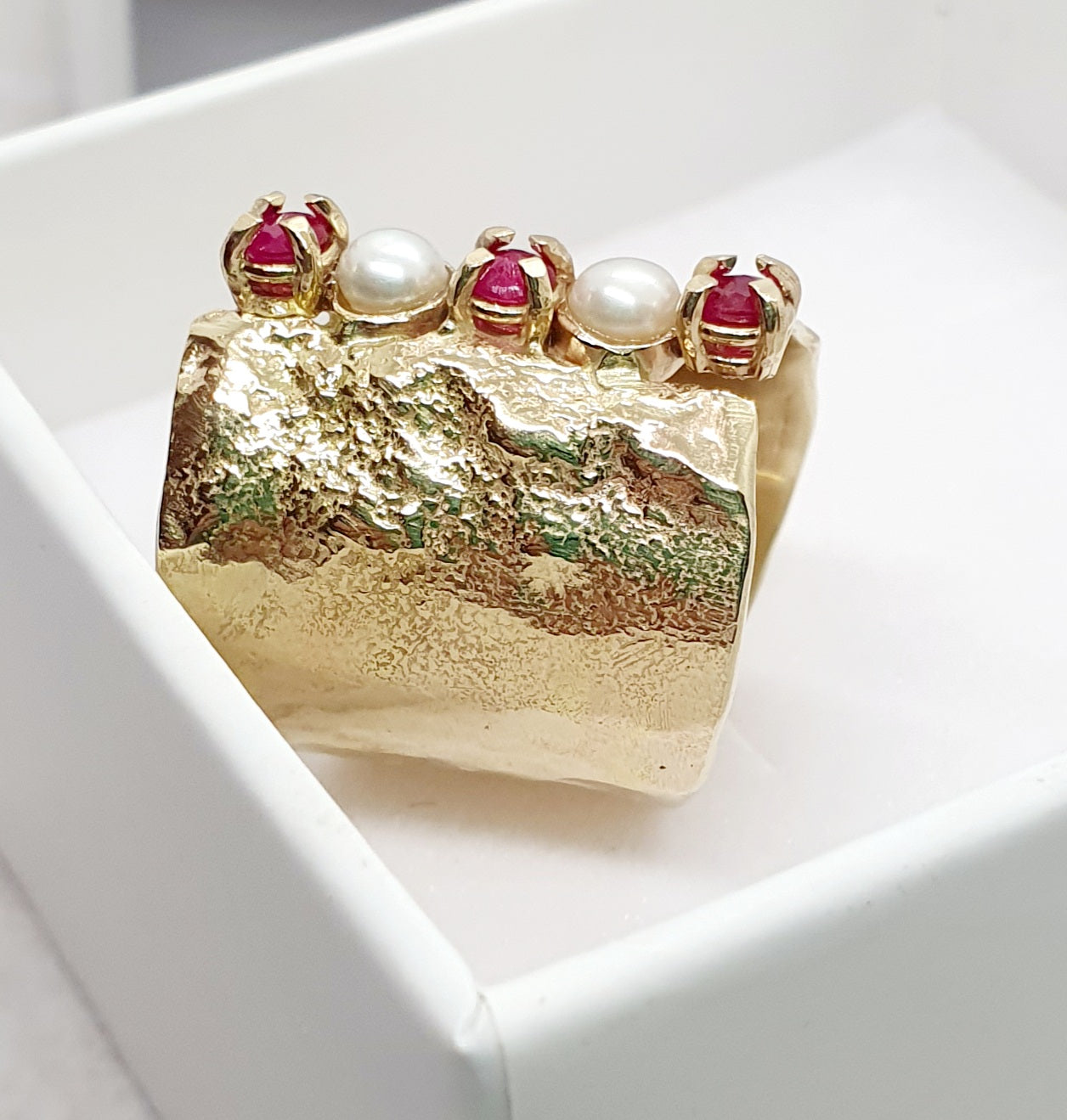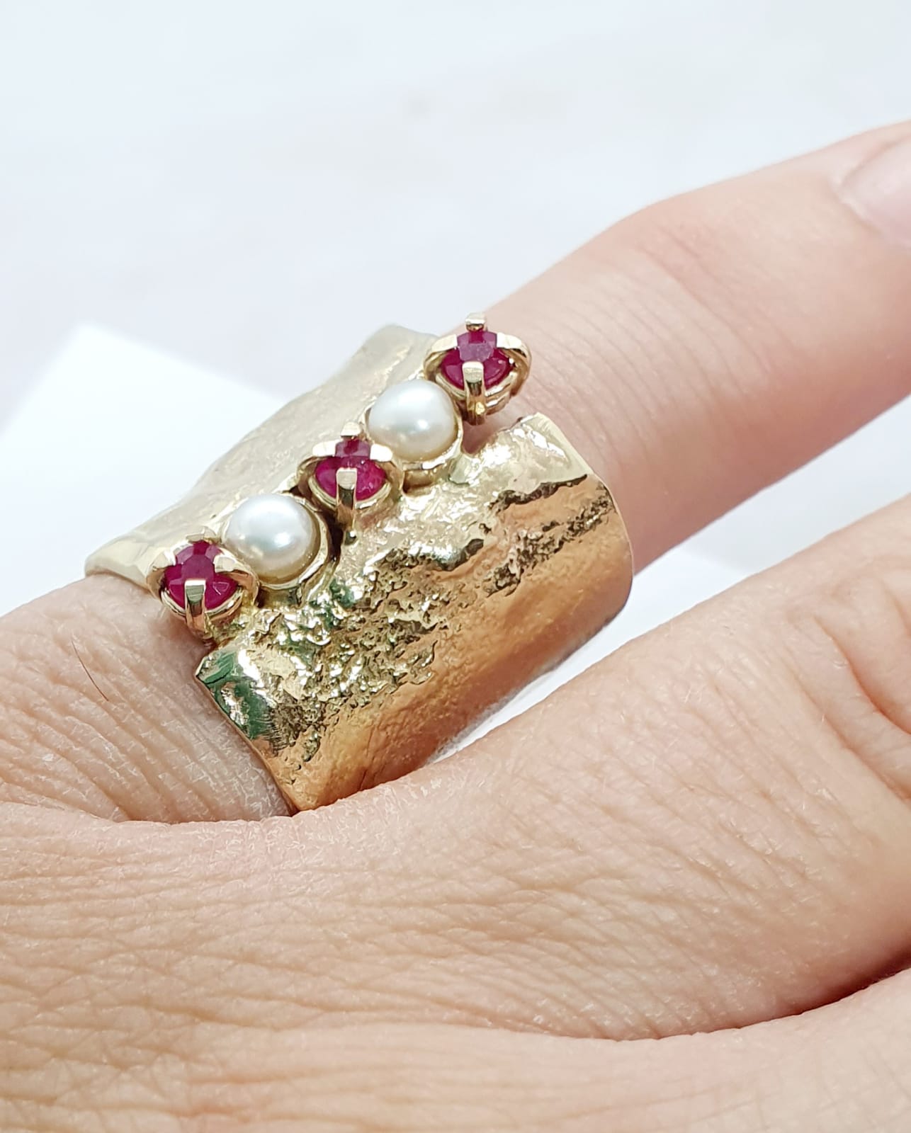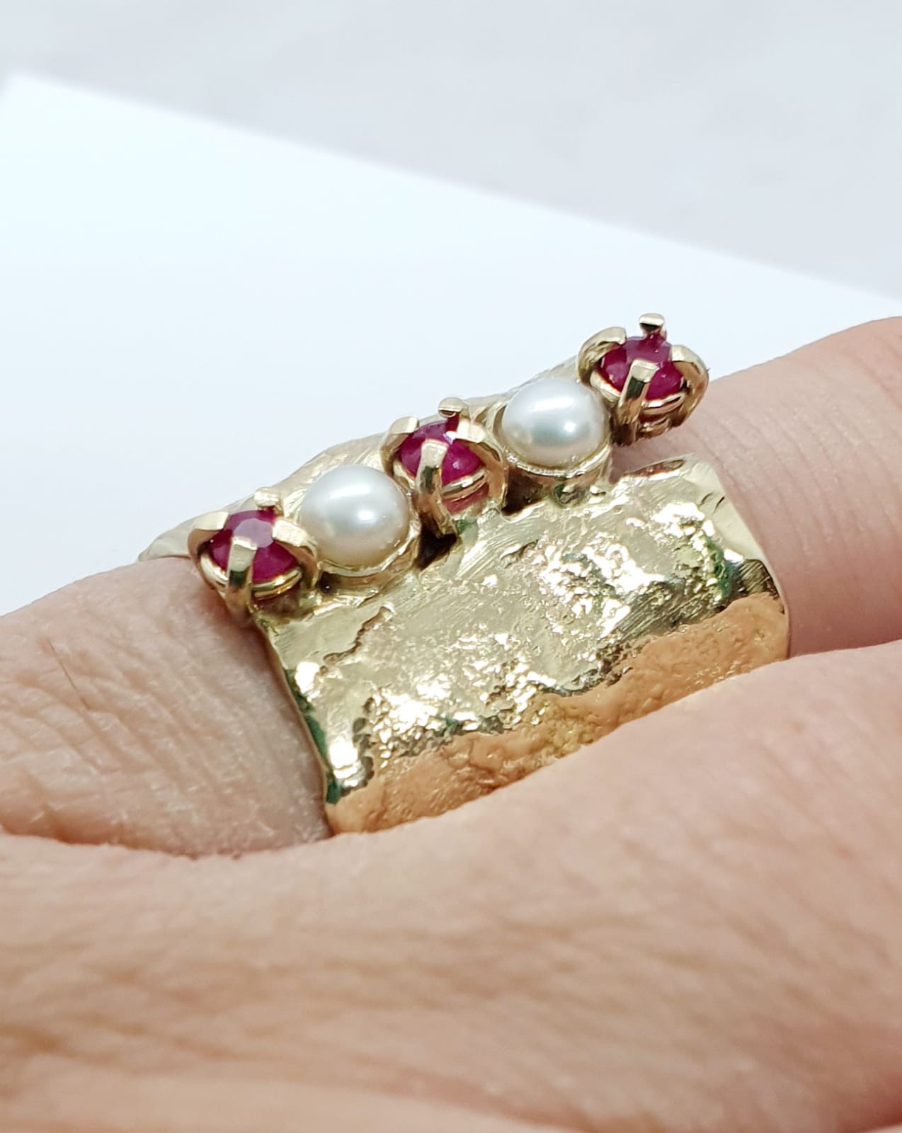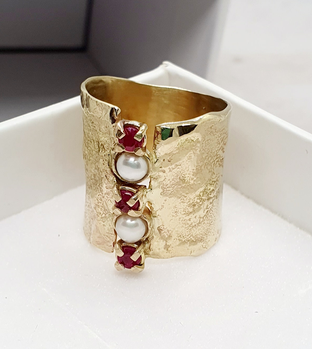 טבעת זהב 14 קראט רחבה ומיוחדת