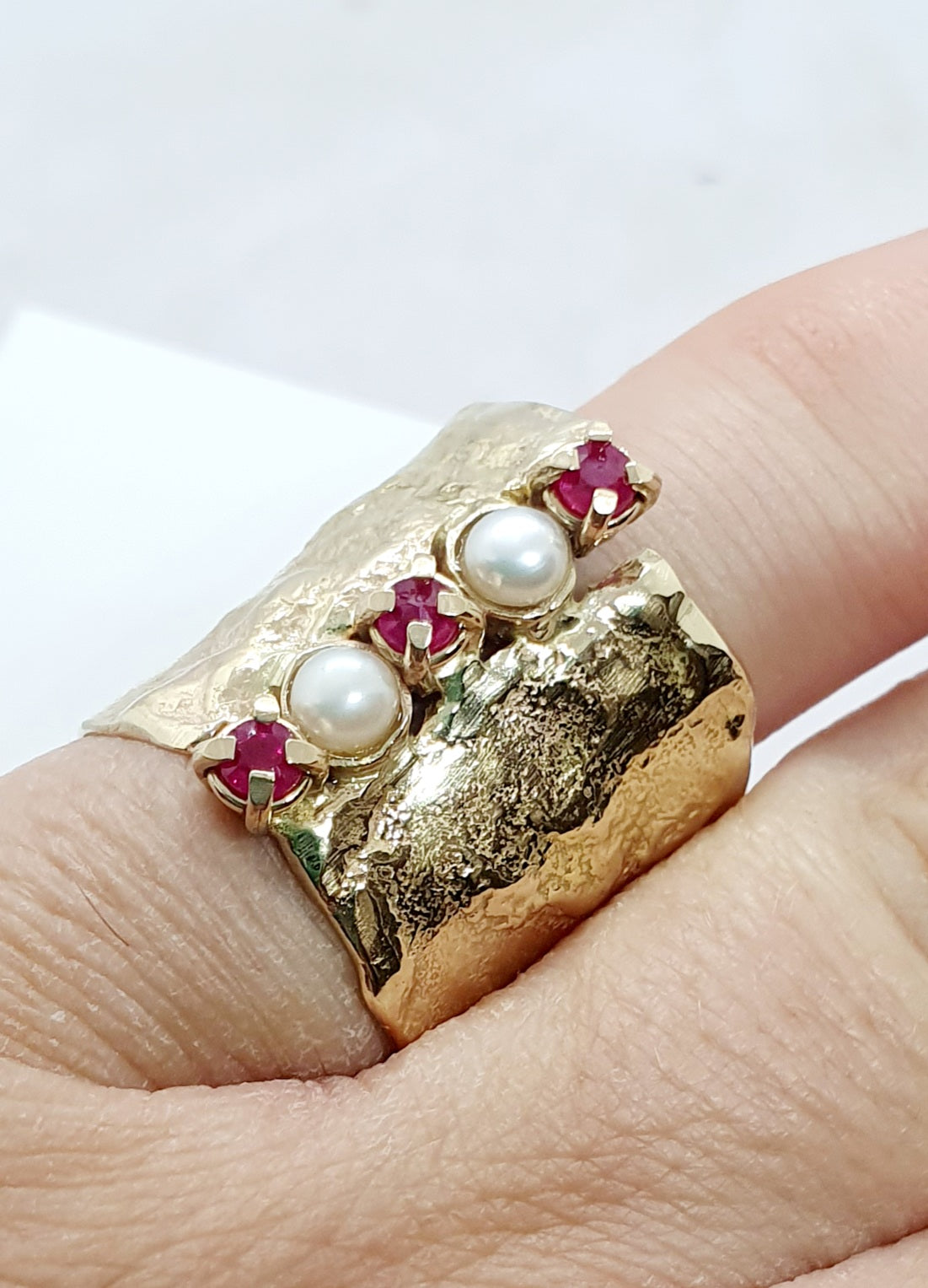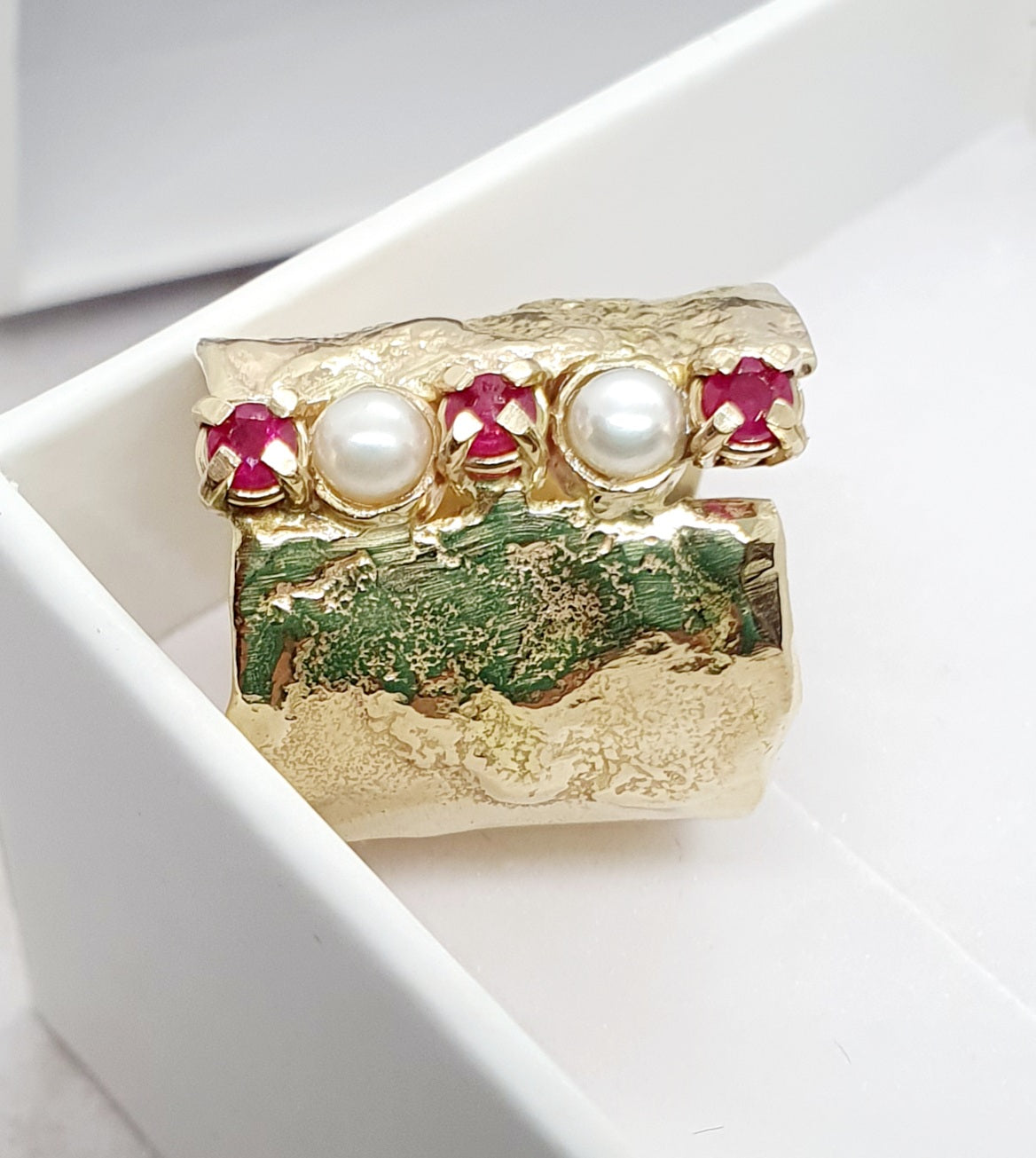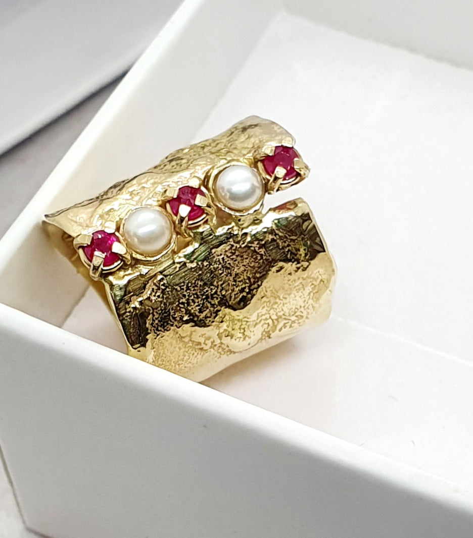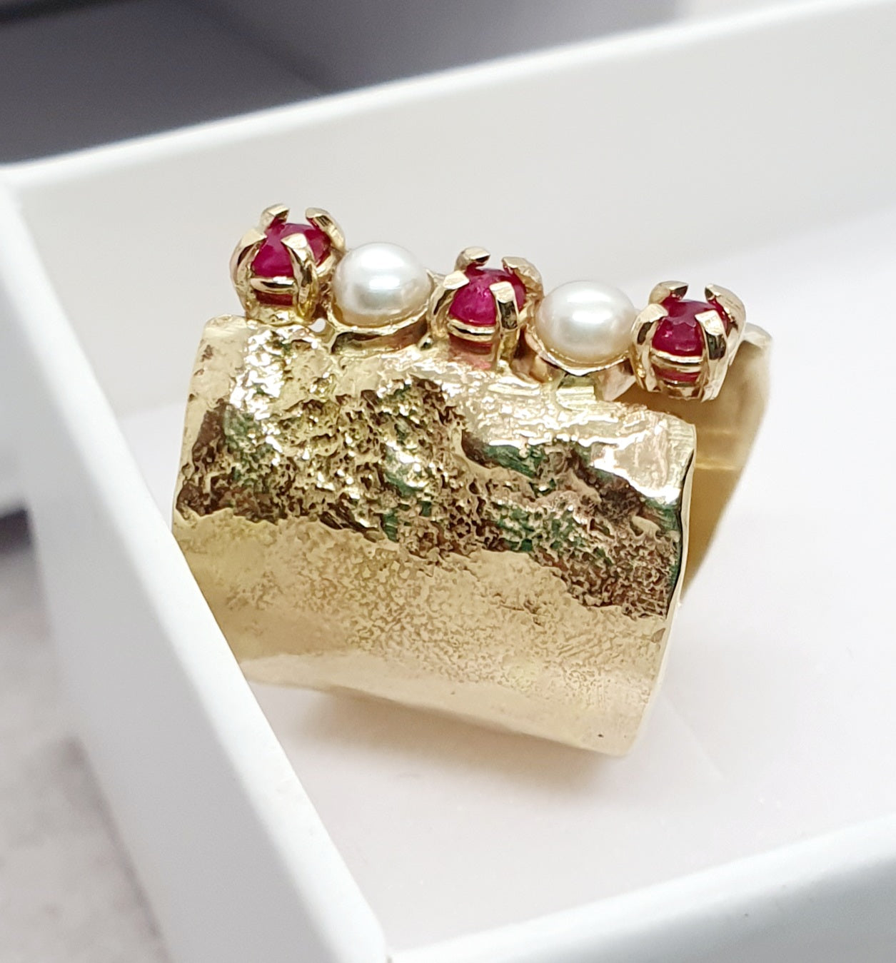 טבעת זהב 14 קראט רחבה ומיוחדת