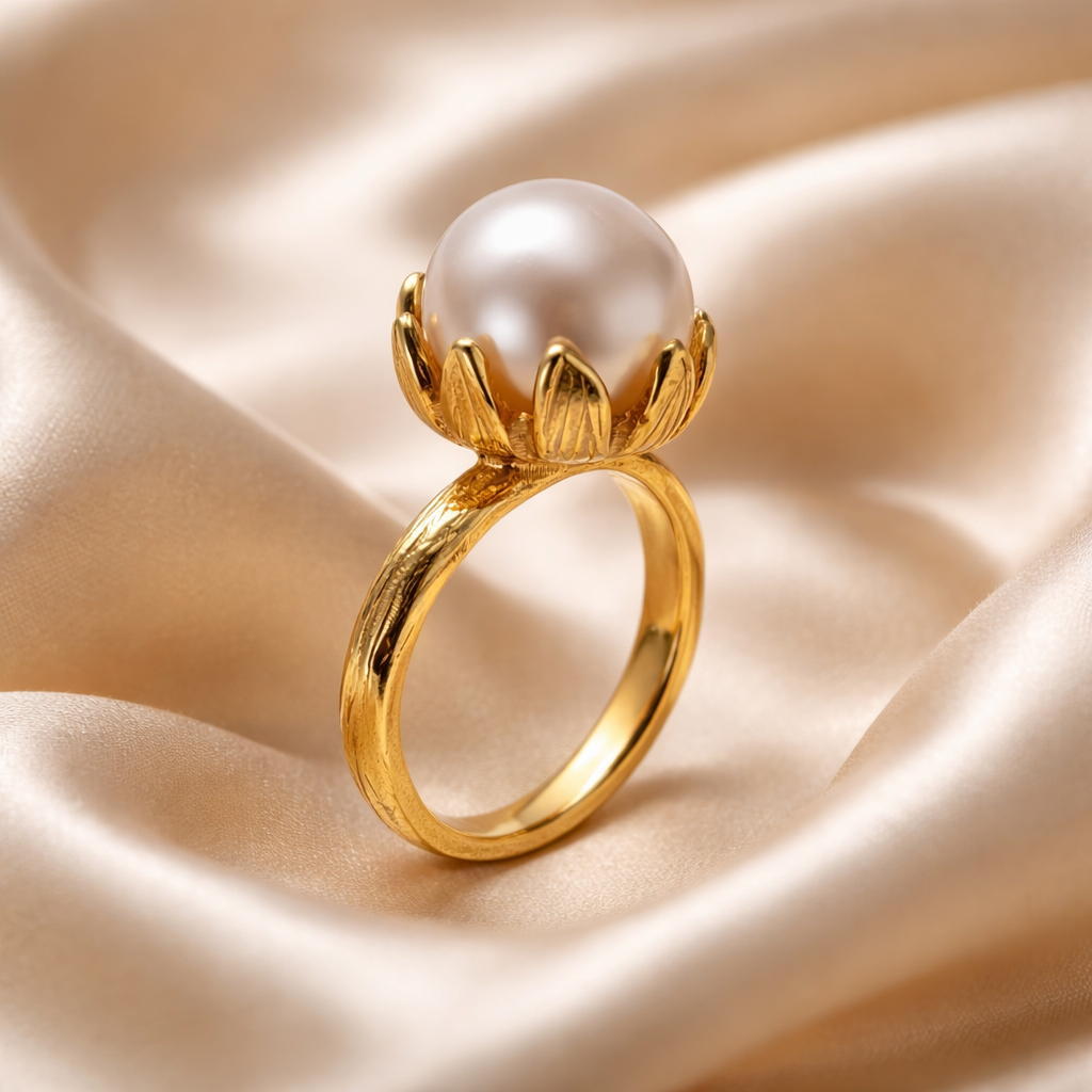 הפנינה הטבעית והעלים שמסביבה יוצרים מראה מלכותי וזוהר