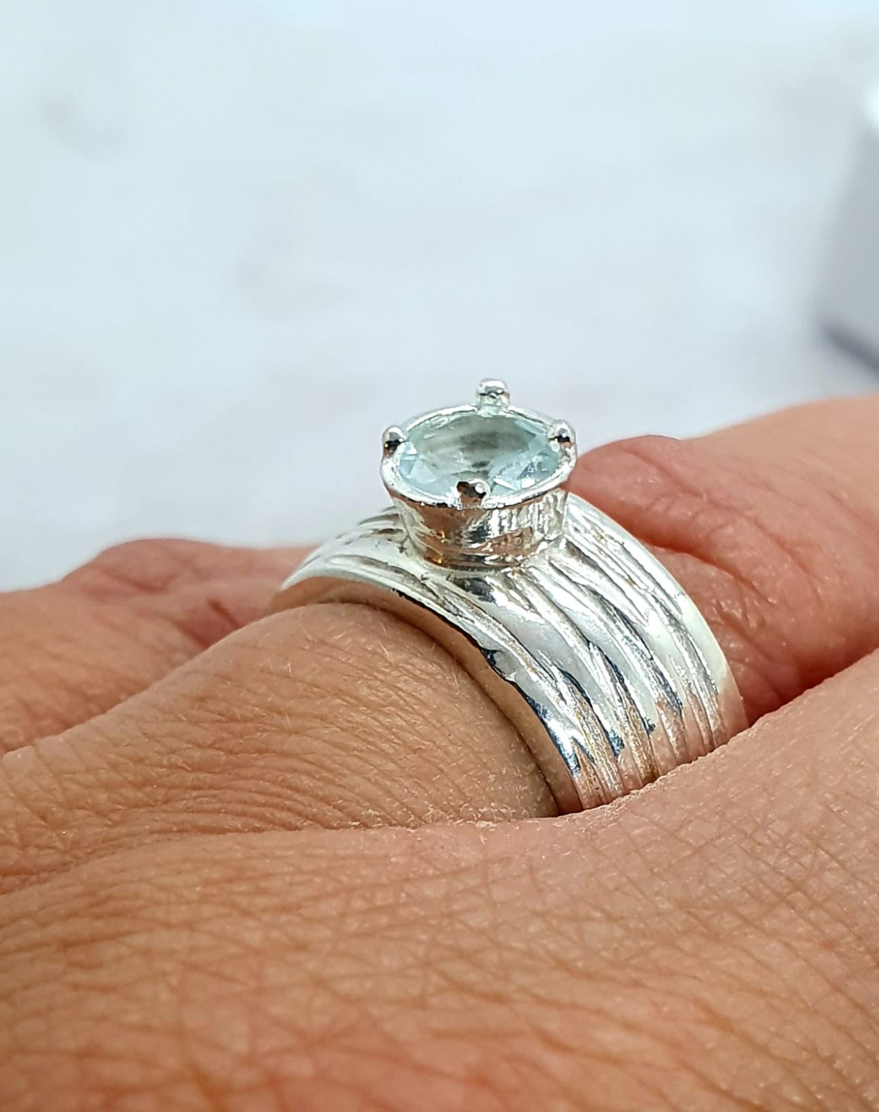 בחלקה העליון משובצת אקווה מרין בוהקת
