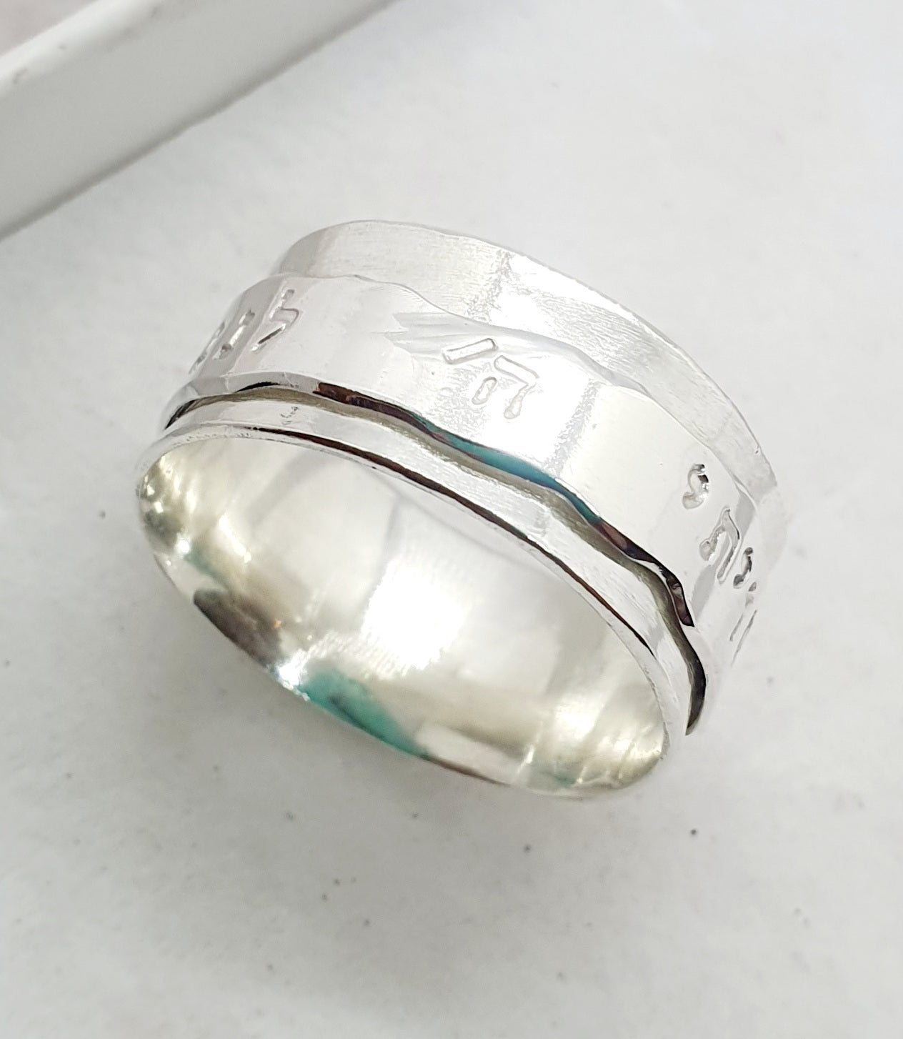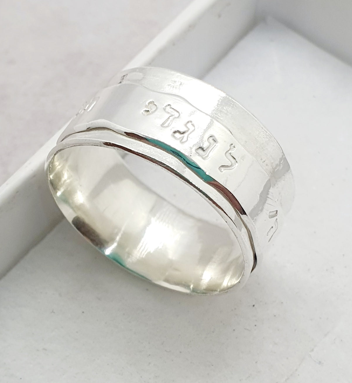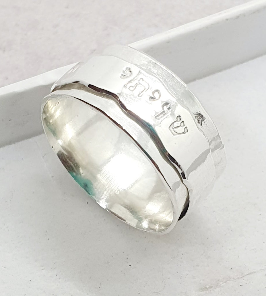 טבעת כסף מסתובבת עם טקסטורות שונות