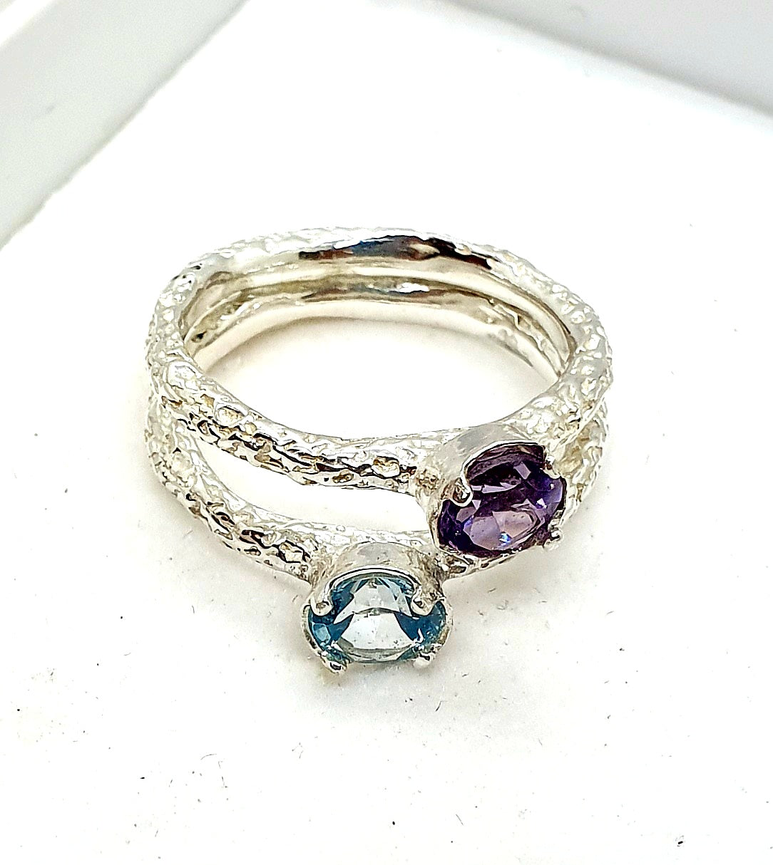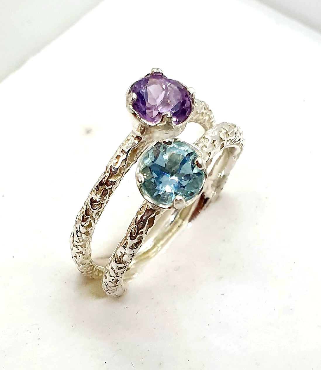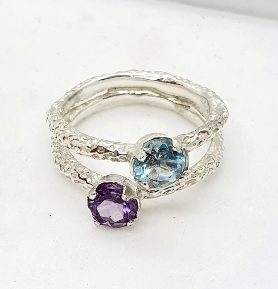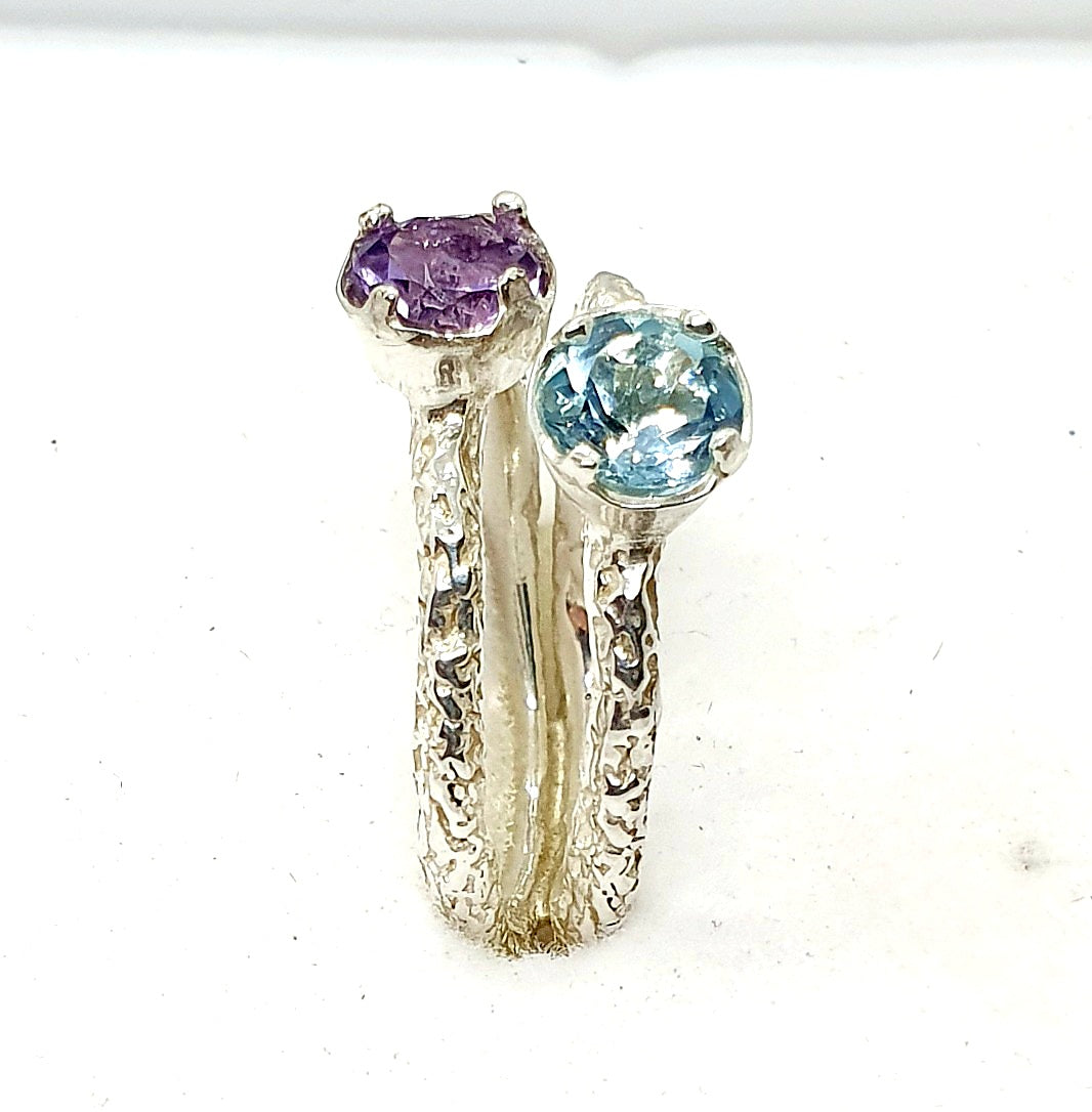 שתי טבעות עדינות עם טקסטורה ייחודית