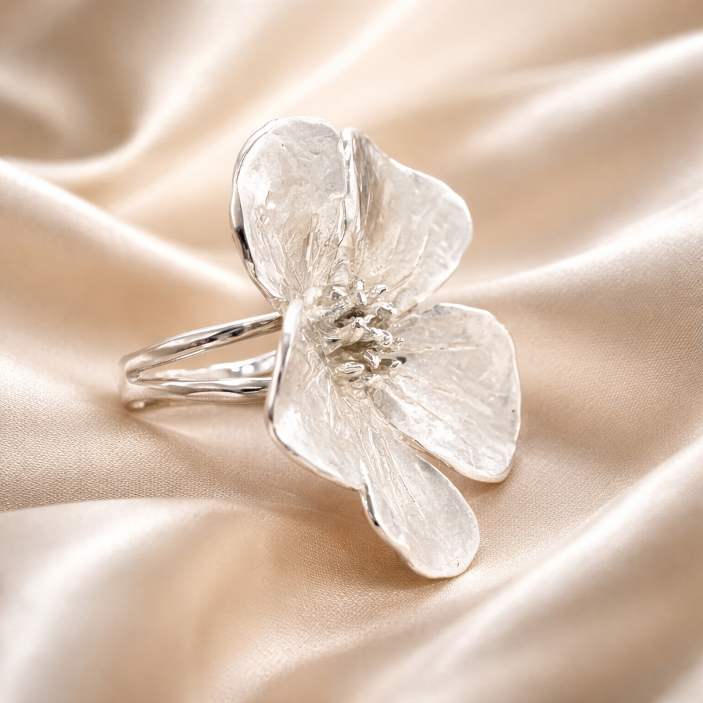 הטבעת שנפתחת לשתי זרועו חובקת את הפרח בחלקו התחתון