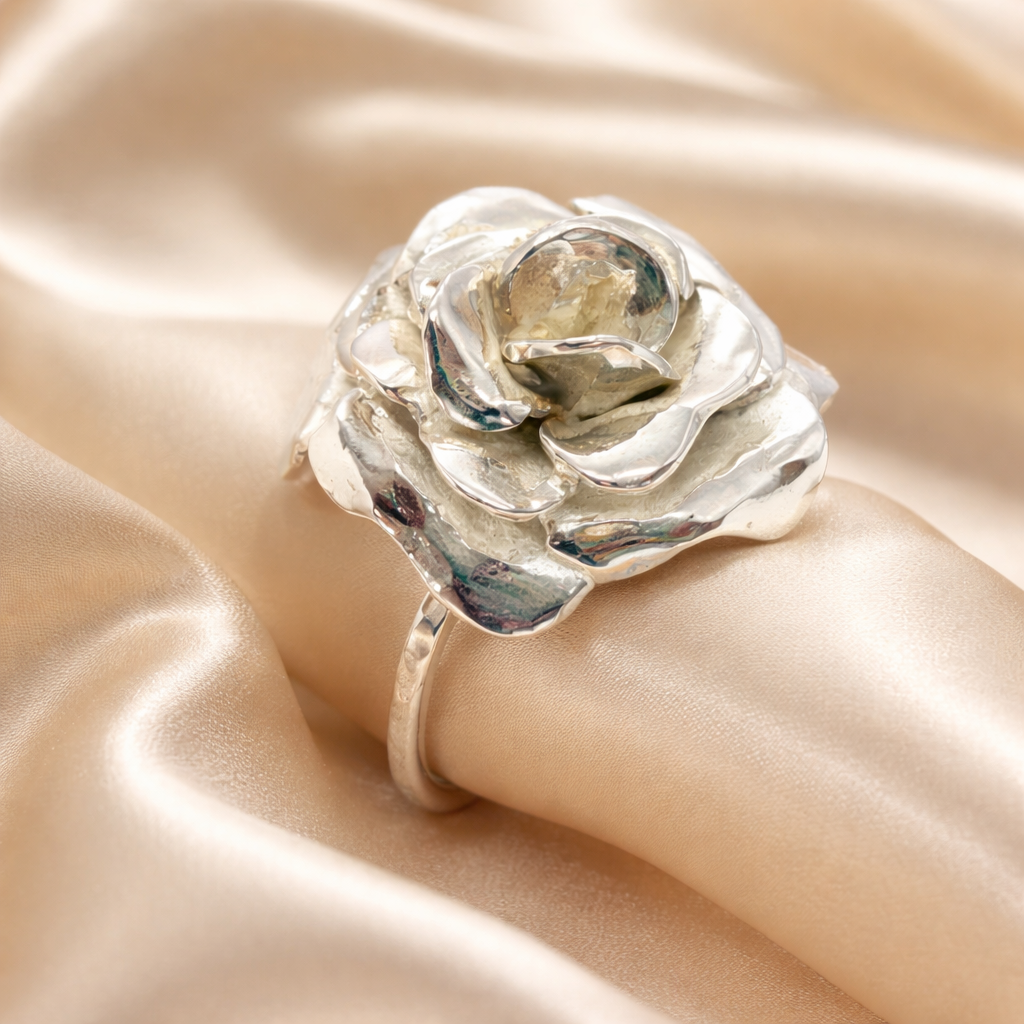 טבעת כסף פרח השושנה