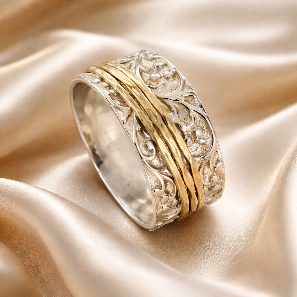 טבעת מסתובבת / ספינר כסף וזהב קינמון