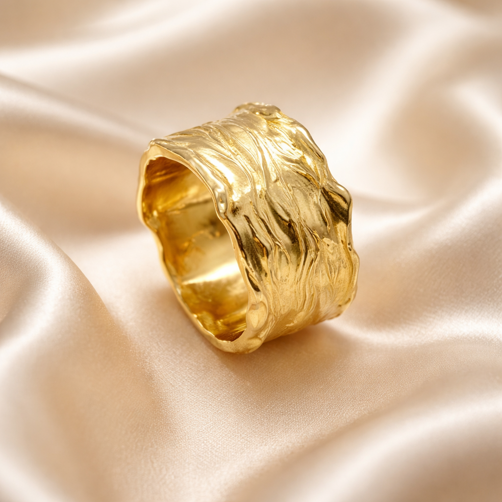 טבעת זהב14 קארט בטקסטורה גלית