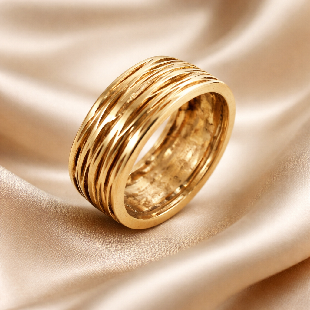 הטבעת עם טקסטורה ייחודית של קווים מחורצים בתוך החומר בכל מיני אורכים