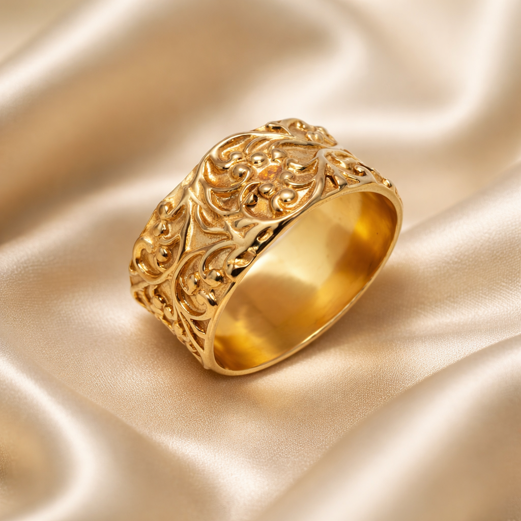 הטבעת מלאת נוכחות עם טקסטורה במרקם תחרה
