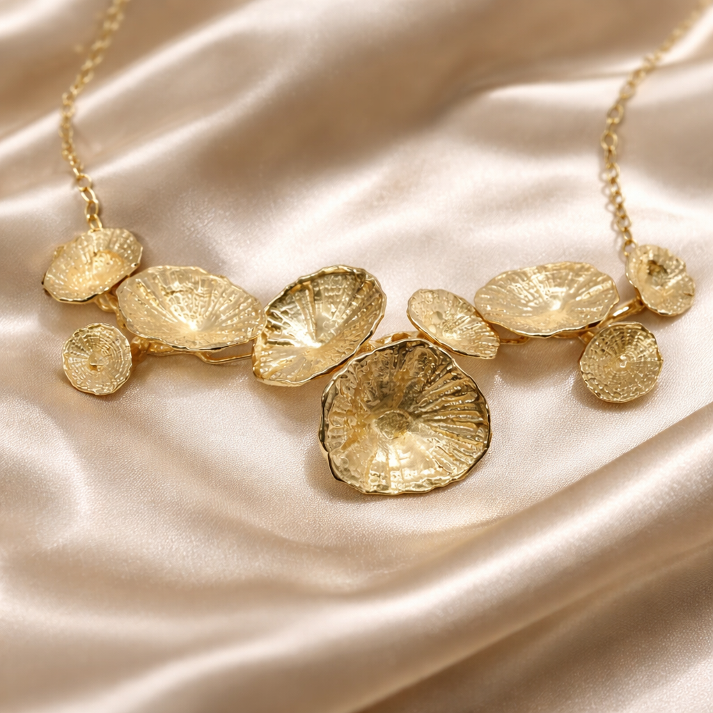 השרשרת מציגה עיצוב ייחודי בהשראת היופי של צדפים שנמצאו לאורך קווי החוף