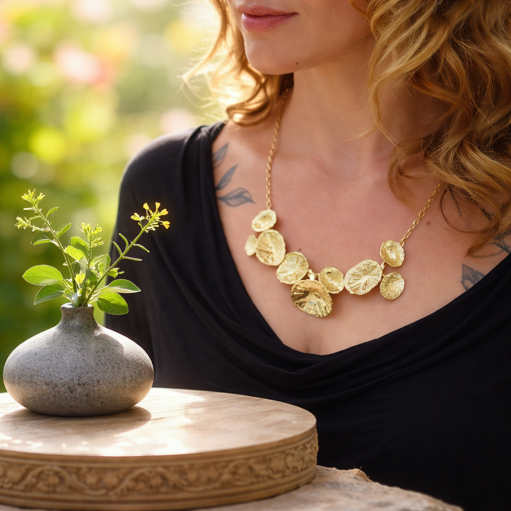 לשרשרת לולאות זהב עדינה המשלימה את היקף הצוואר