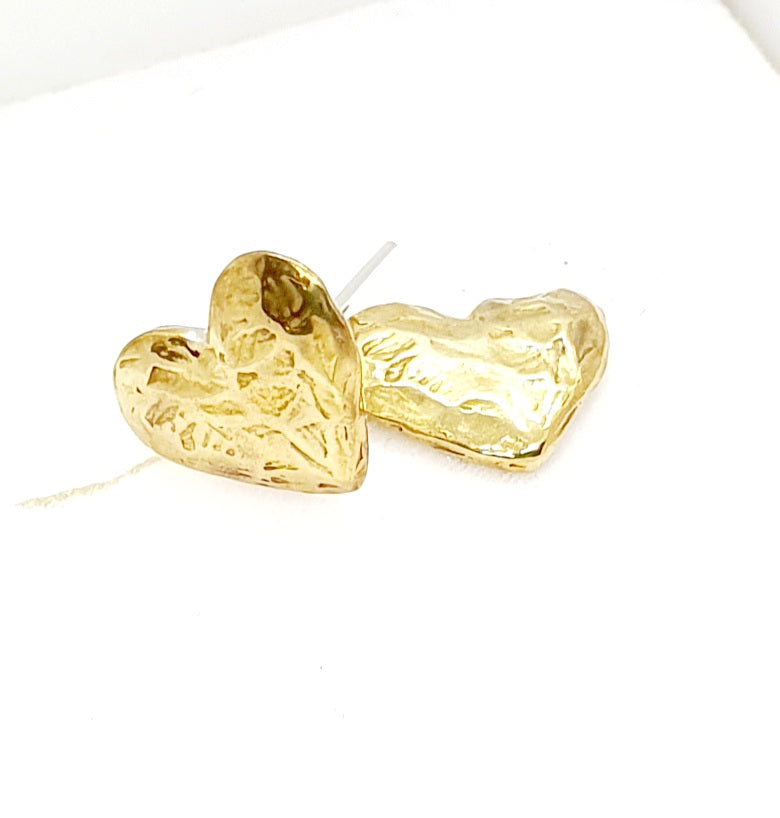 עגילי זהב 14 קראט לב צמוד