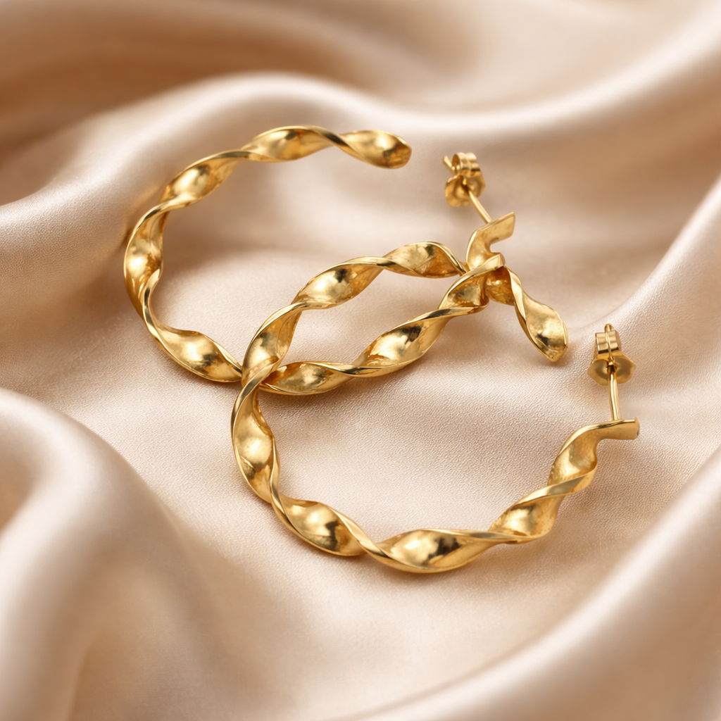 העגילים מפוסלים לחישוק מפותל מן רצועה מסובבת שיוצרת מראה ייחודי
