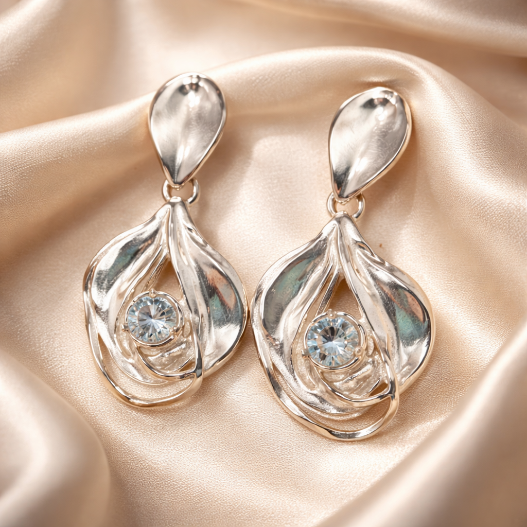 ובלב הטיפה משובץ זירקון בוהק ונוצץ היוצר מראה מלא בסטייל