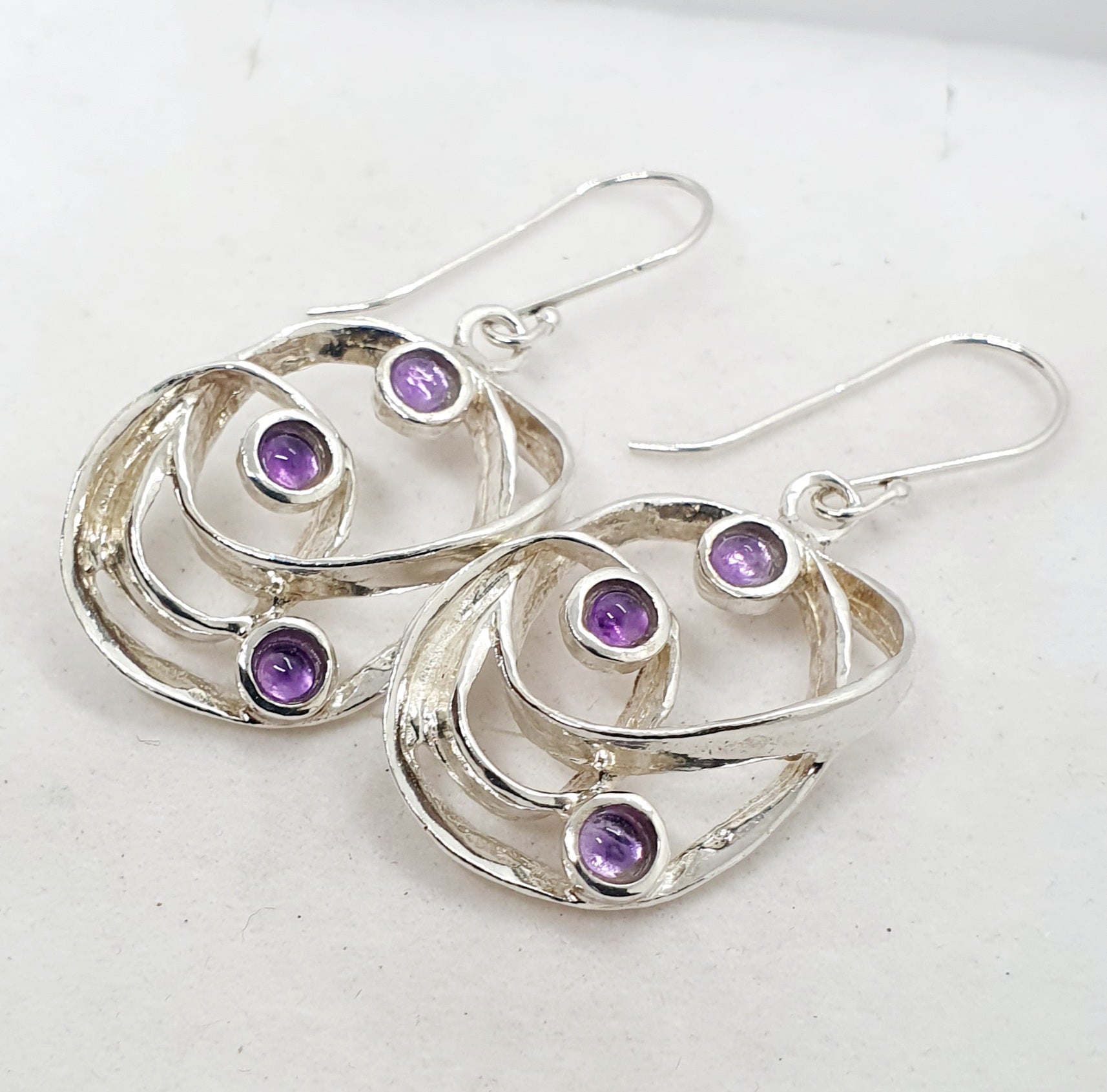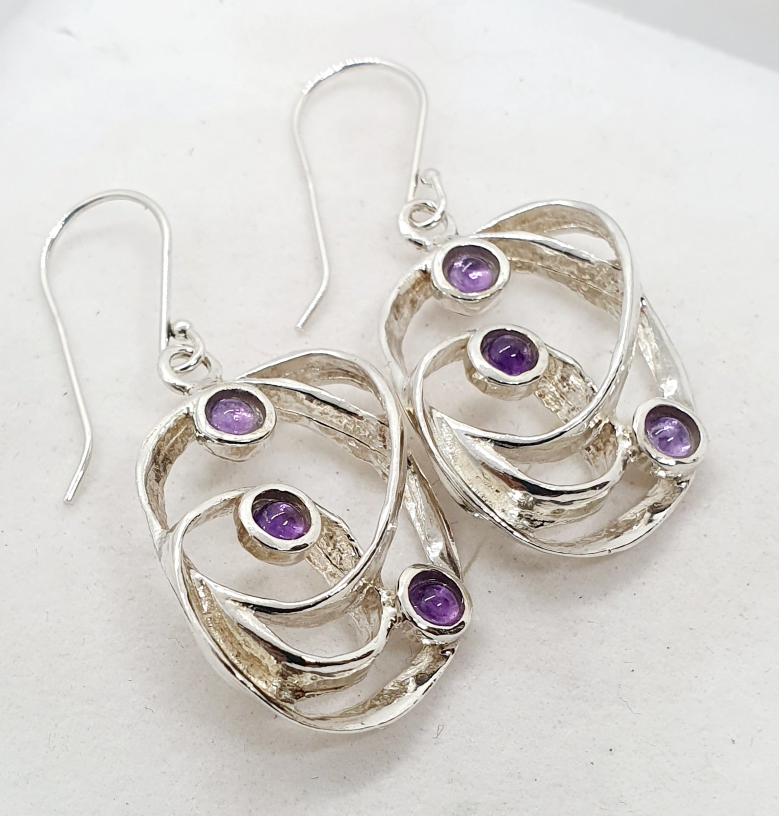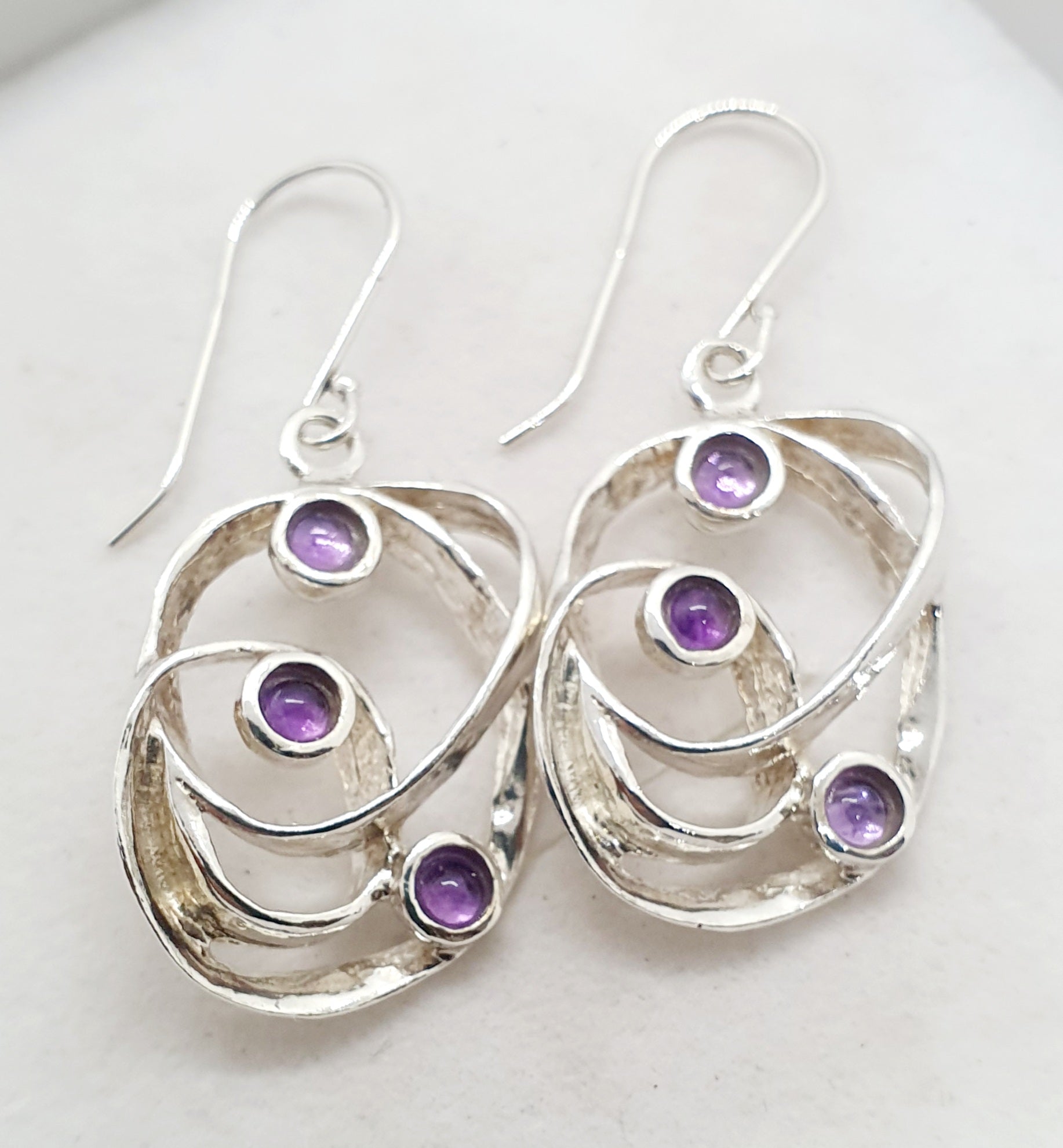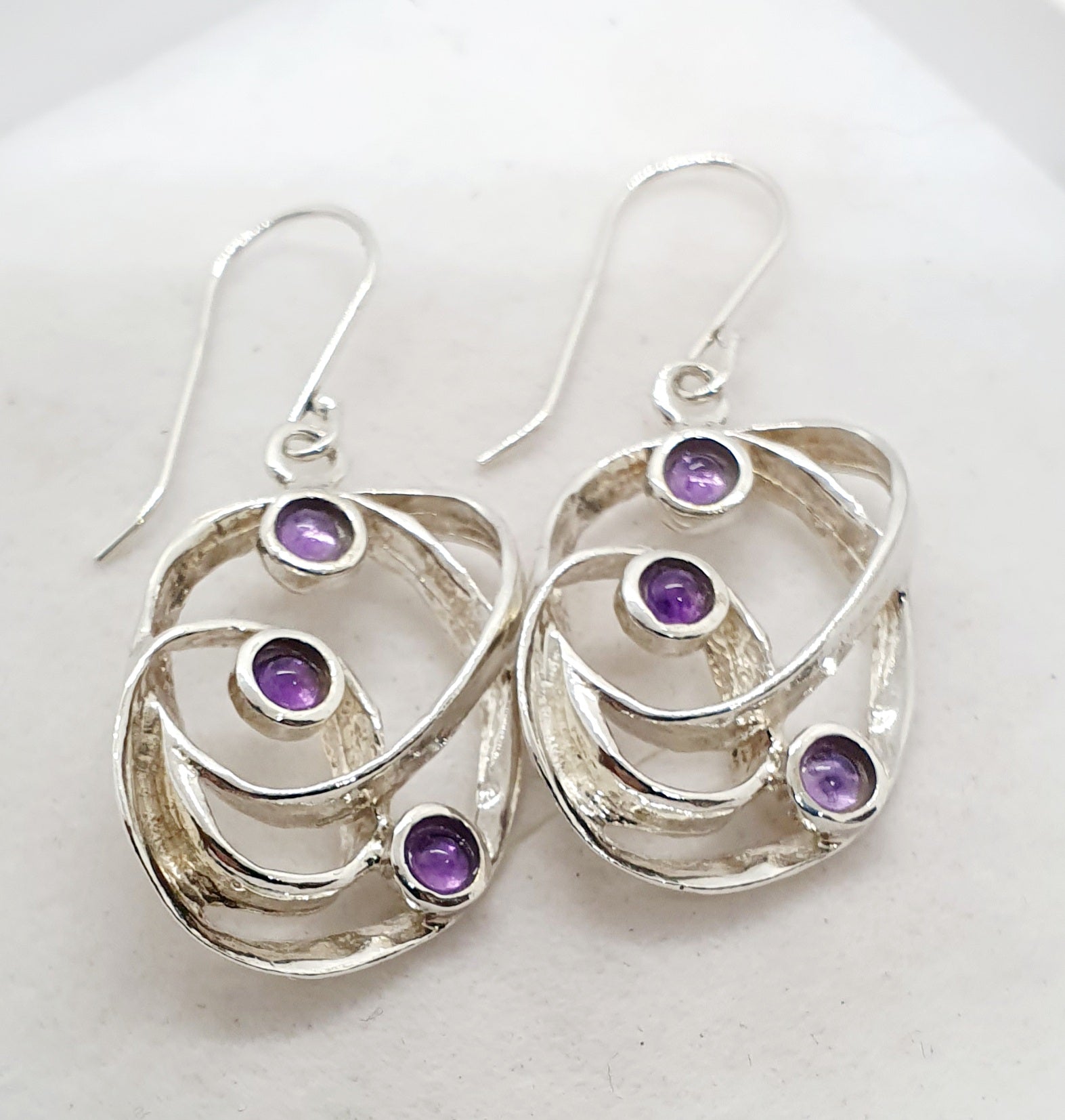 עגילים מפוסלים מרצועות כסף בטוויסט מפותל יוצרות מבנה אובלי