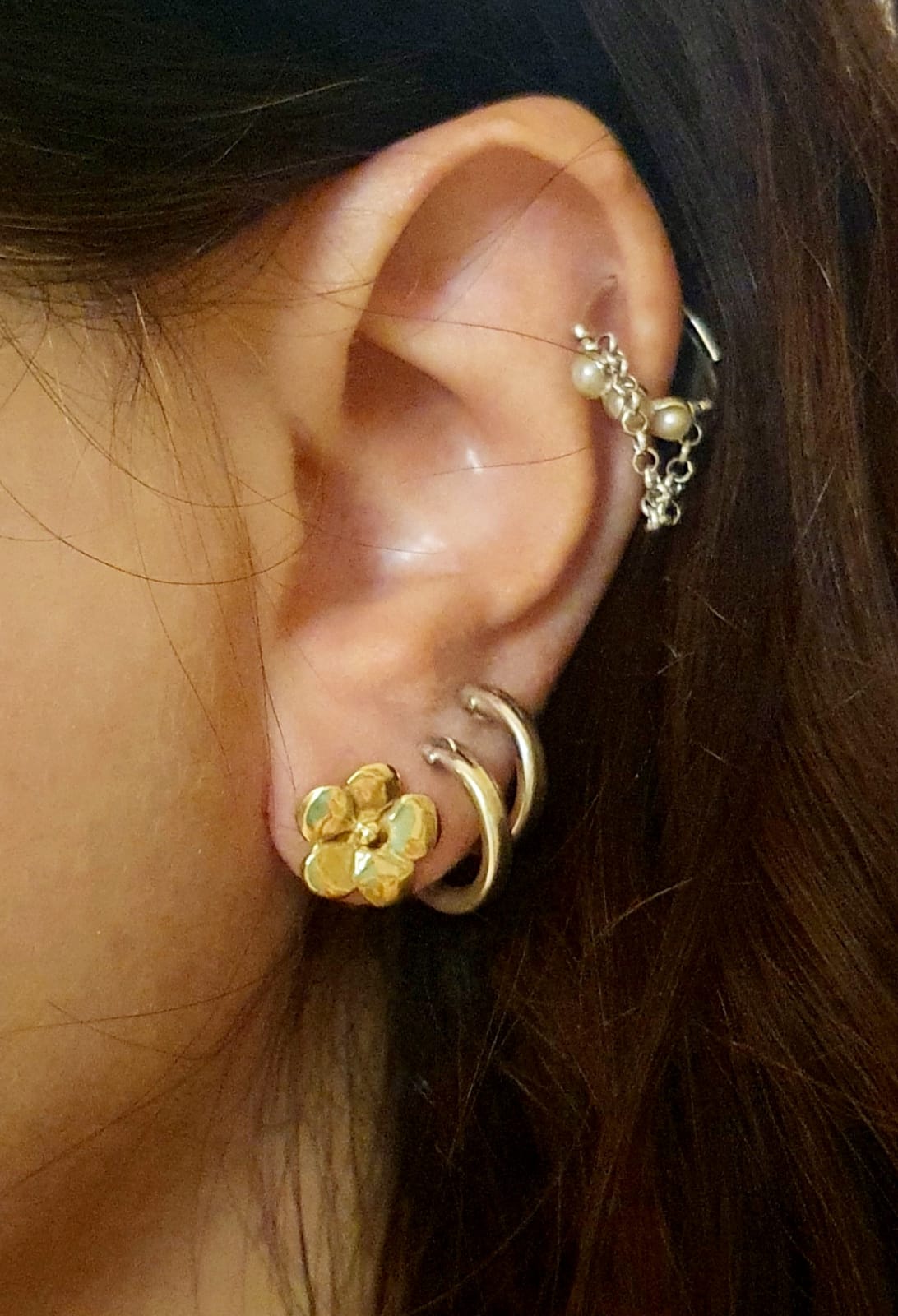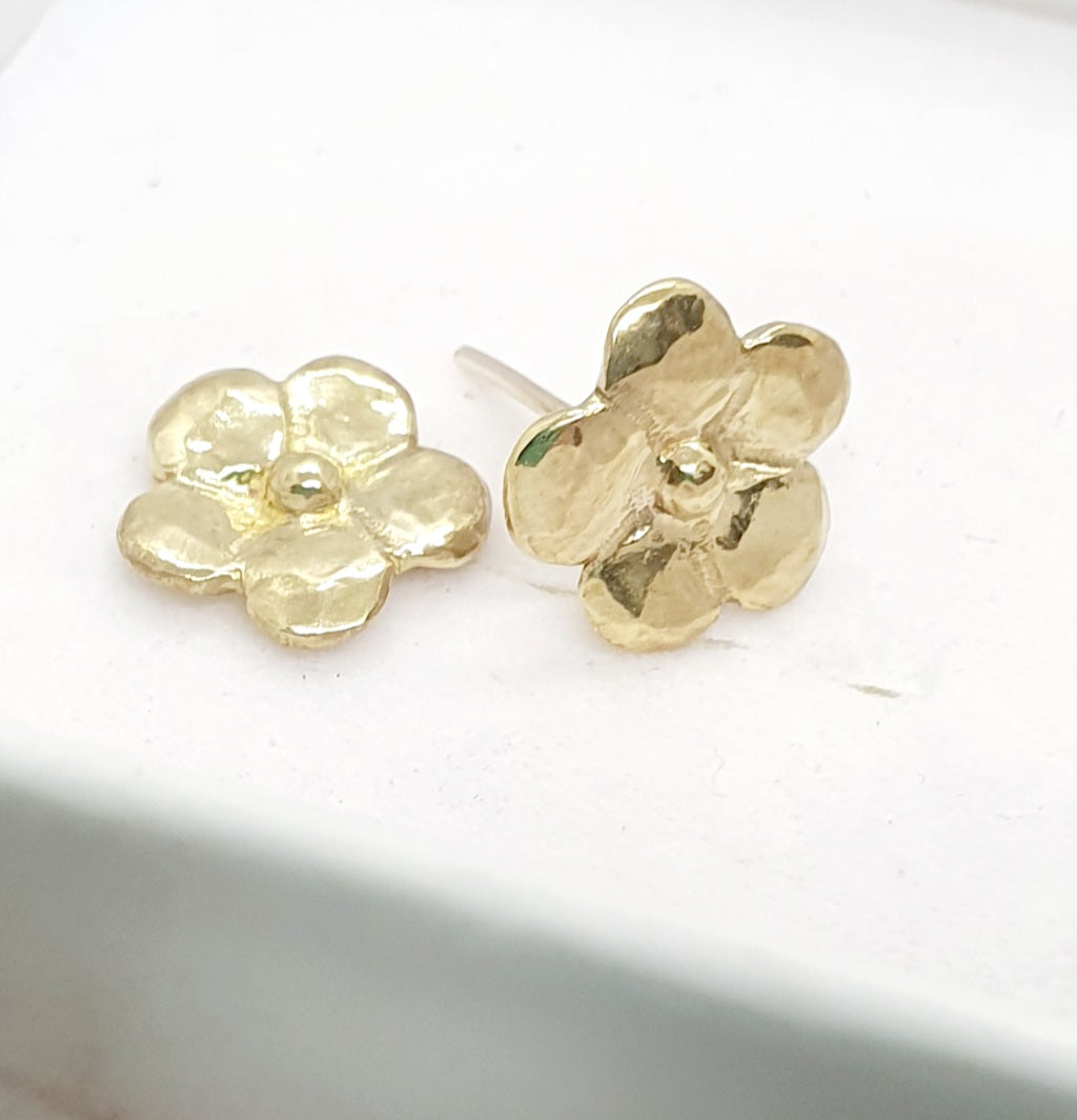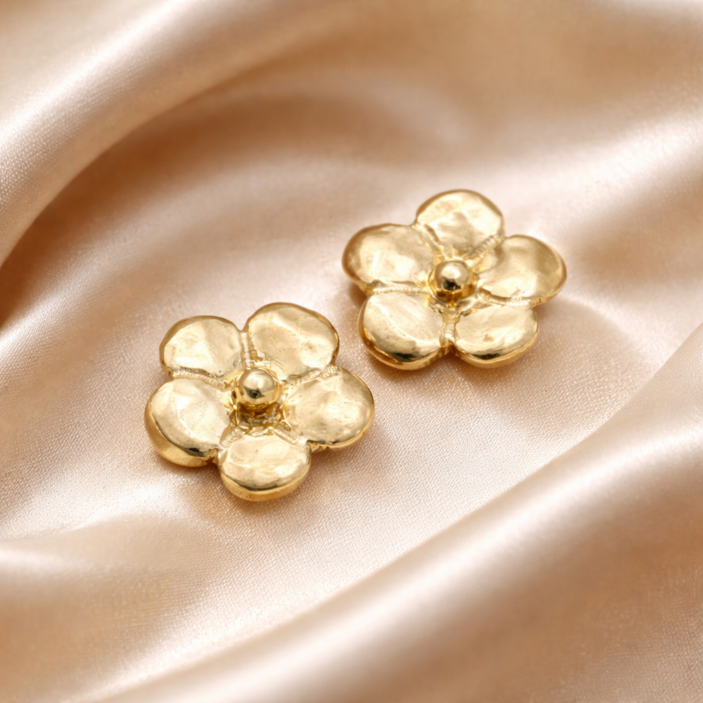 עגילי פרח זהב צמודים