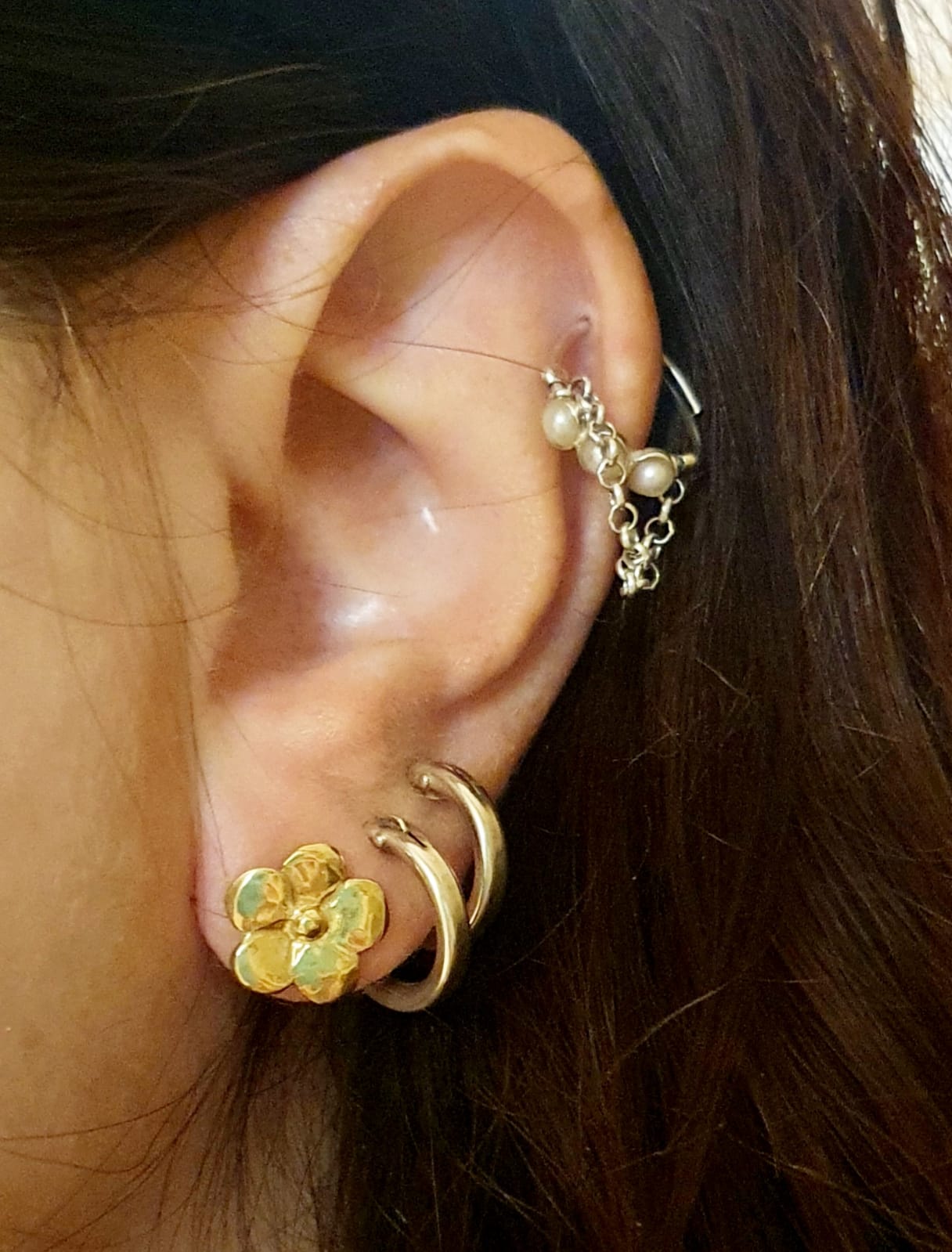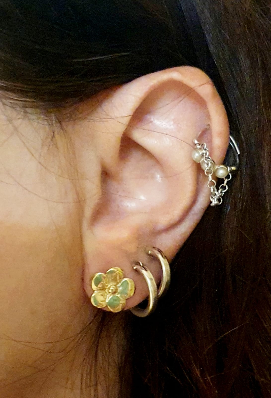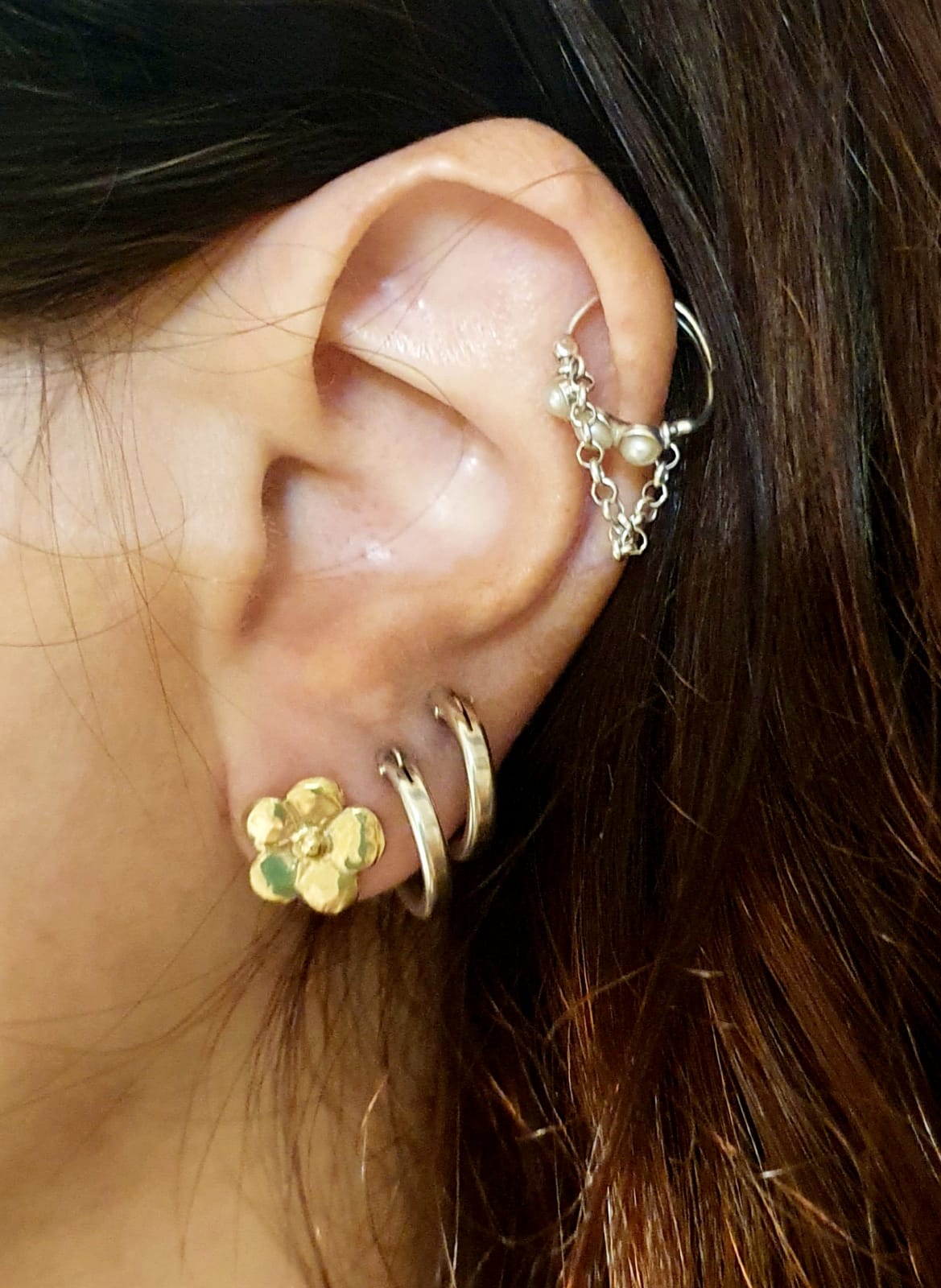 עגילי פרח זהב צמודים