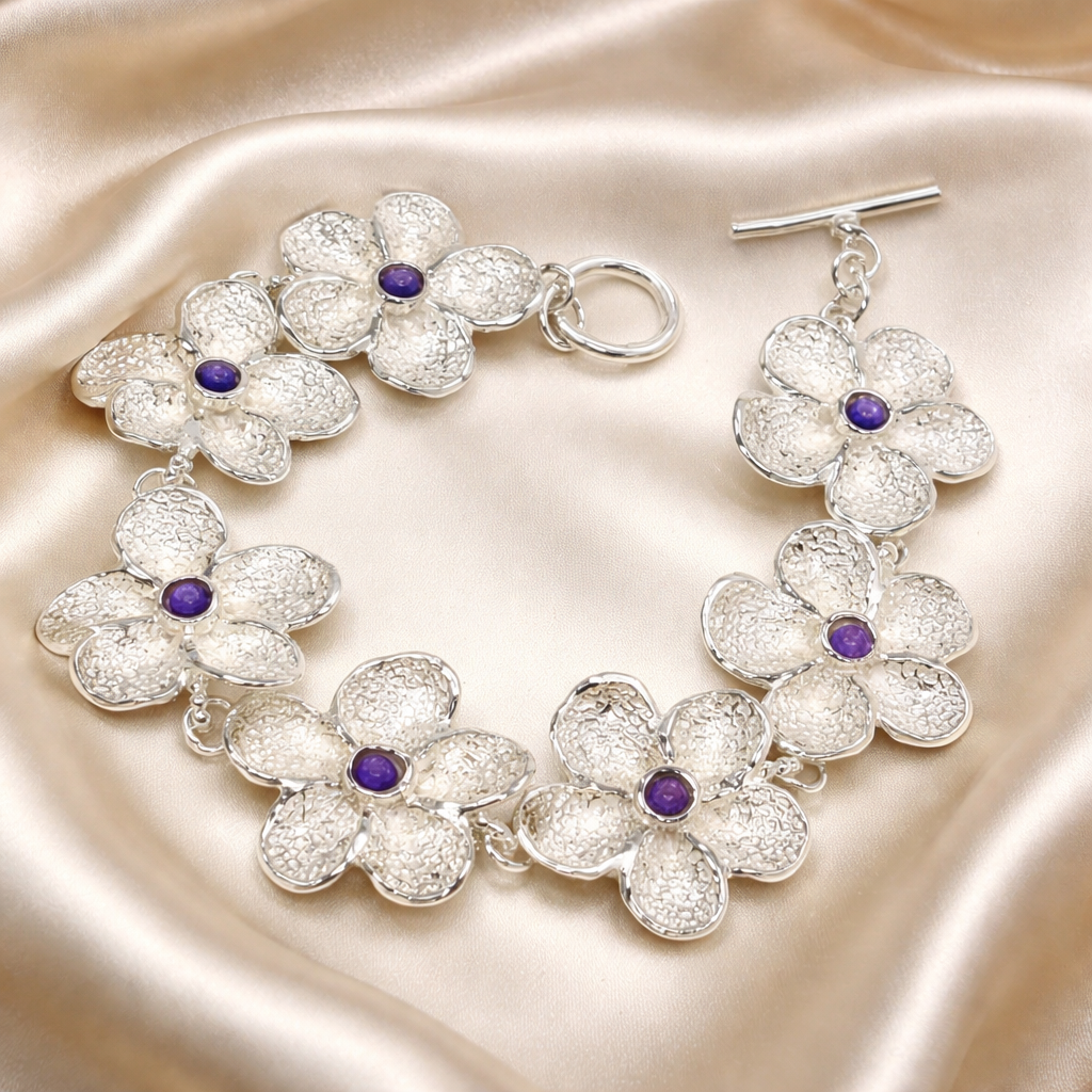 צמיד כסף מחוליות של פרחים שיפרחו מסביב לפרק ידך