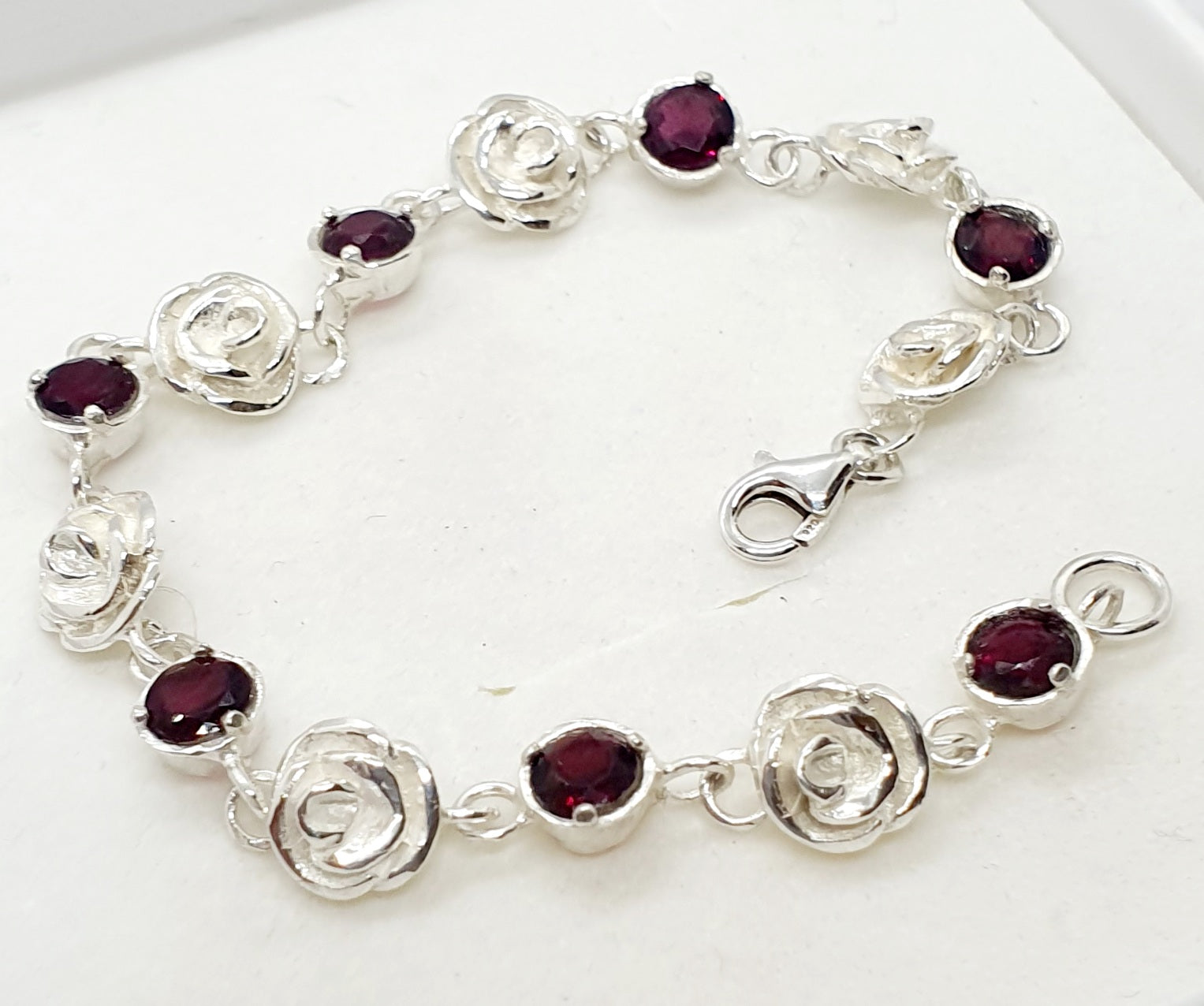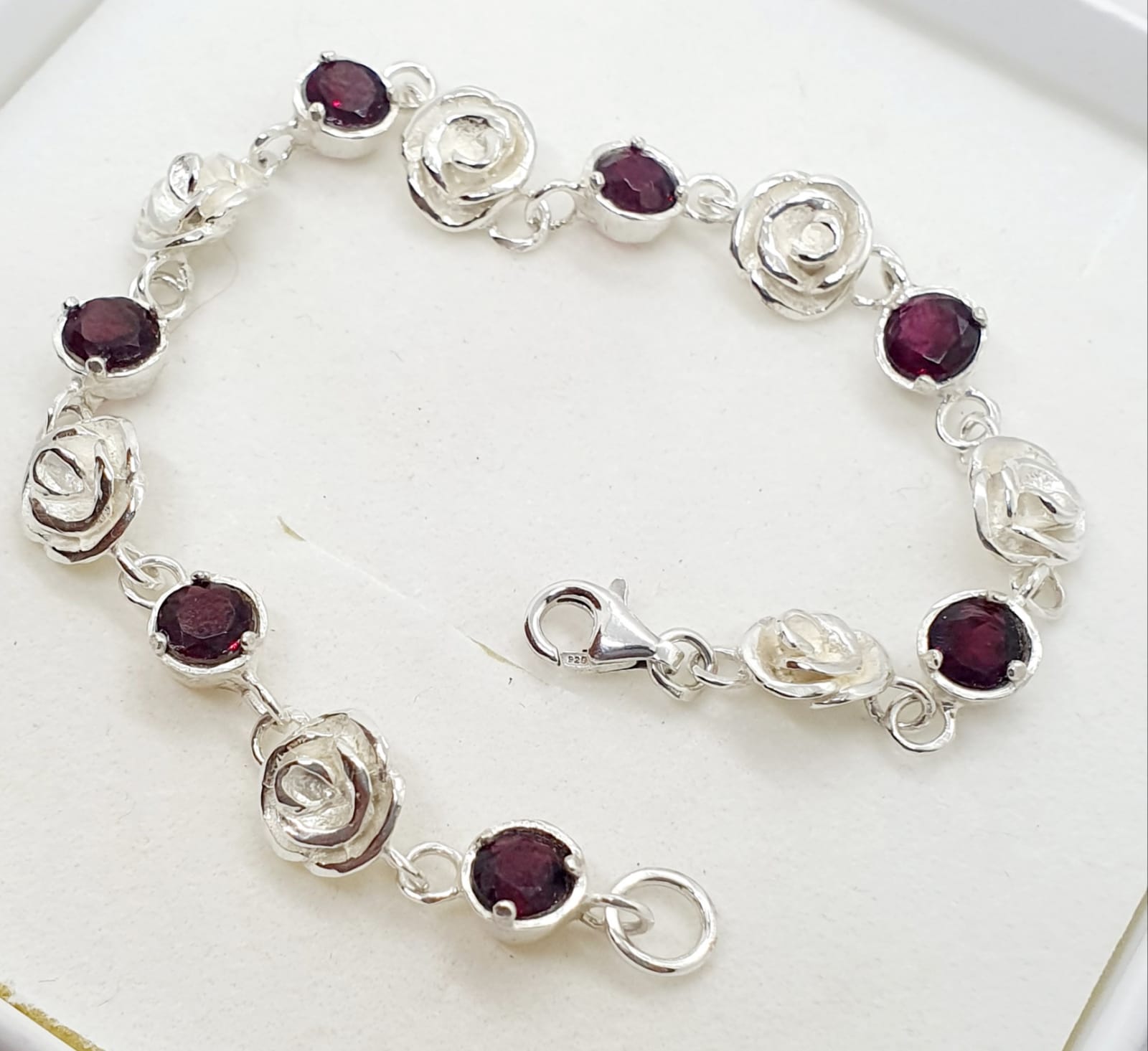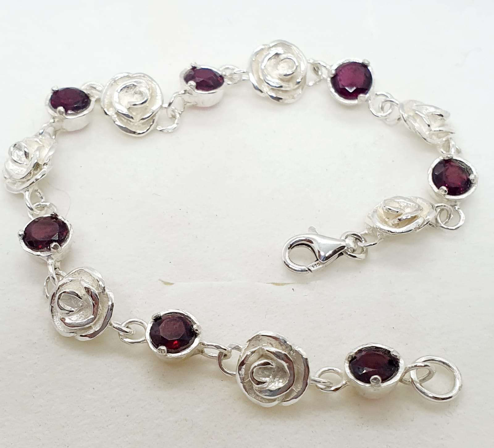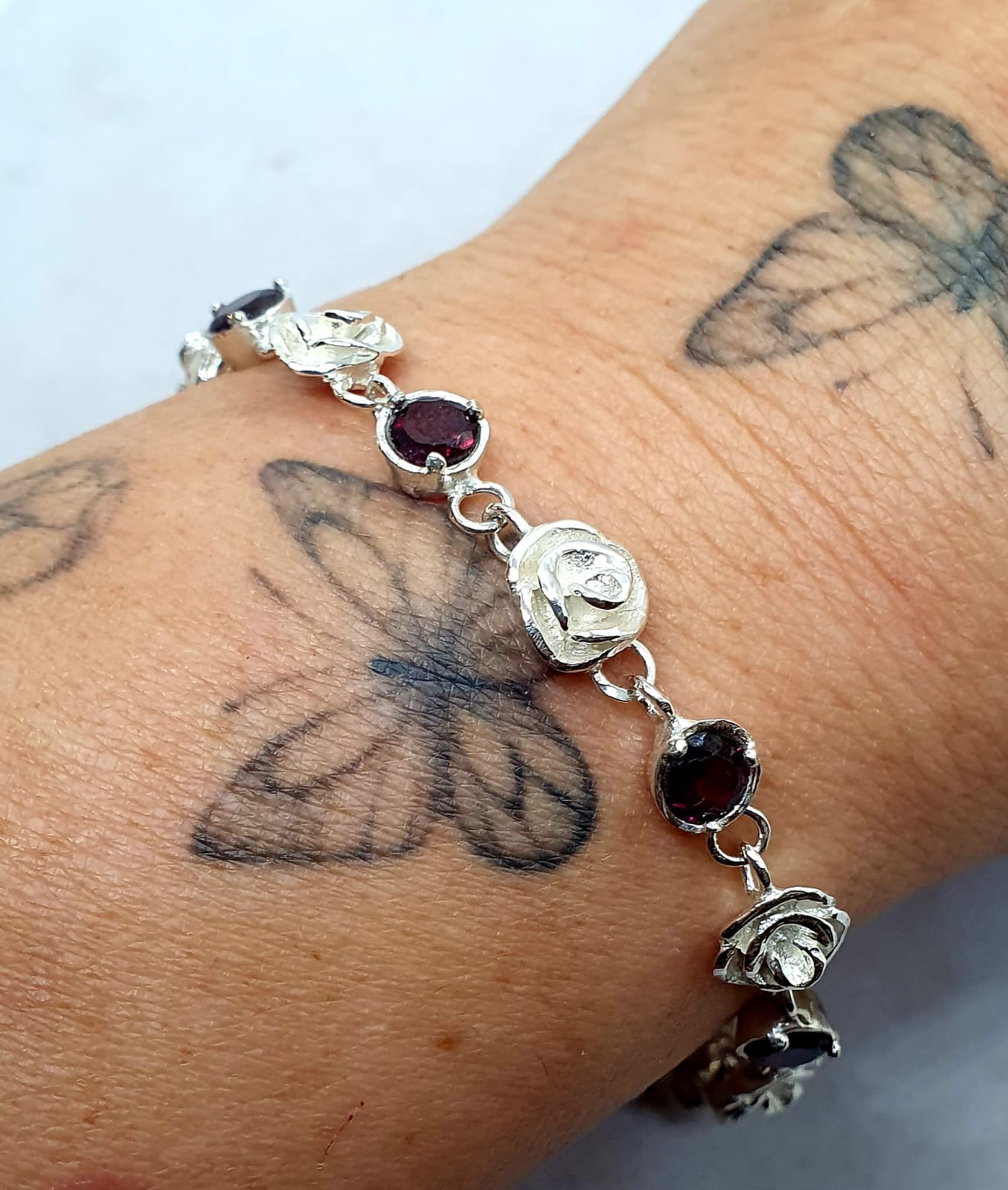 צמיד כסף חוליות פרחים ואבני חן