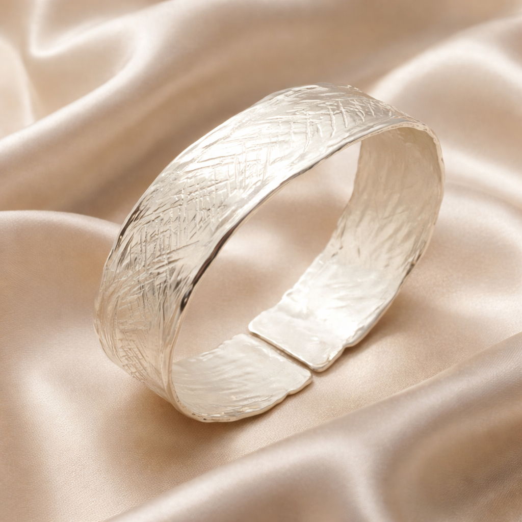רצועה רחבה מכסף עם טקסטורת קווים ייחודית