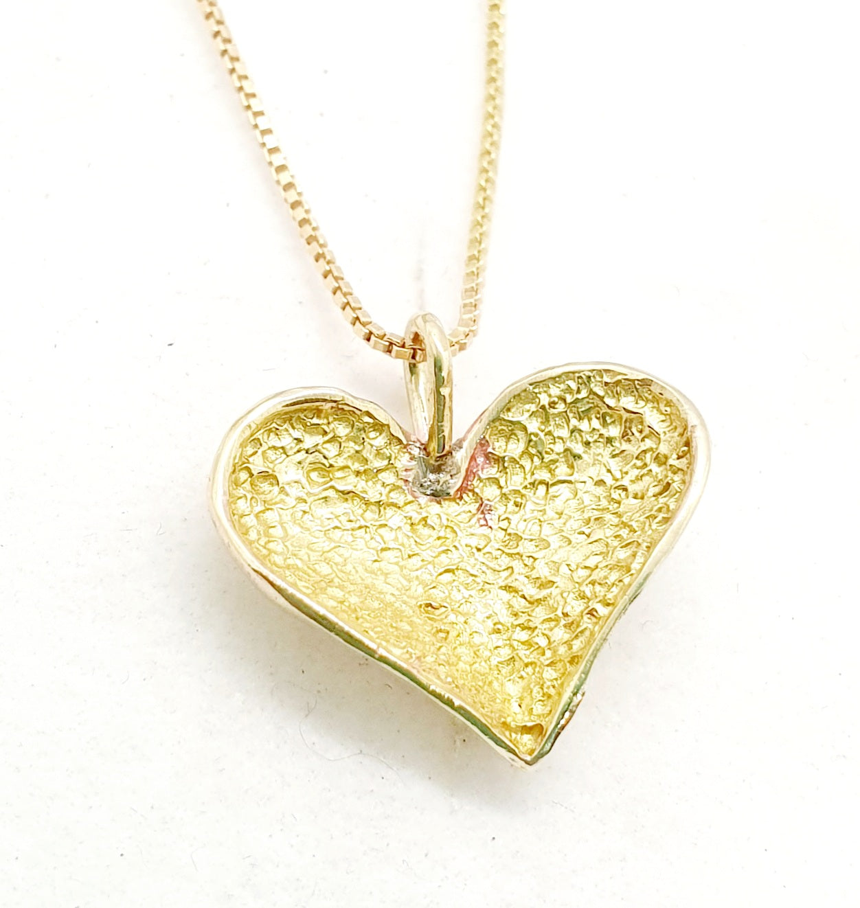 לב קטן מפוסל קעור עם טקסטורה ייחודית שגורמת לו לזרוח למרחקים