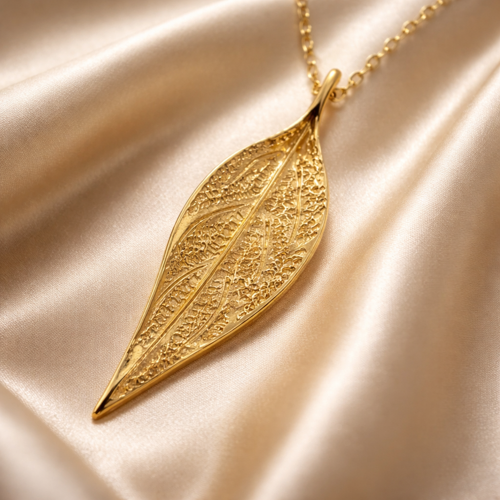 התליון זהב הזה הוא פיסול של עלה של זית