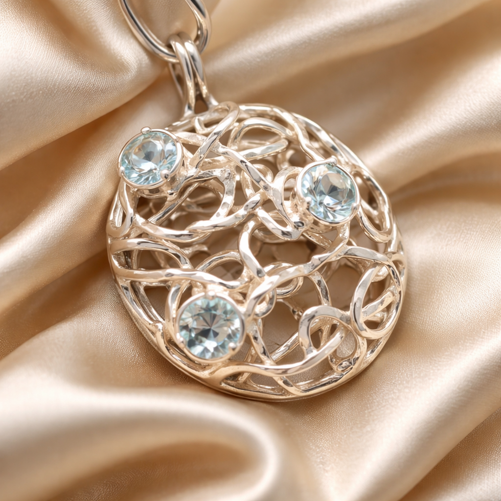 ובין החוטים המפותלים פורחים להם שלוש בלו טופז בוהקים בתכלת האוקיינוס שלהם