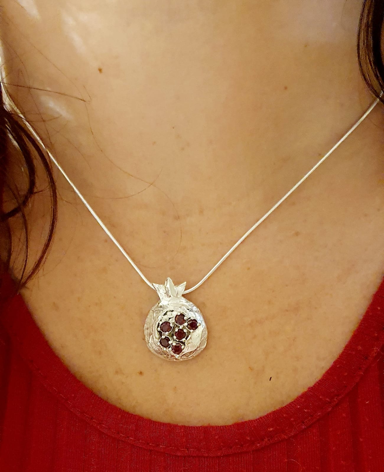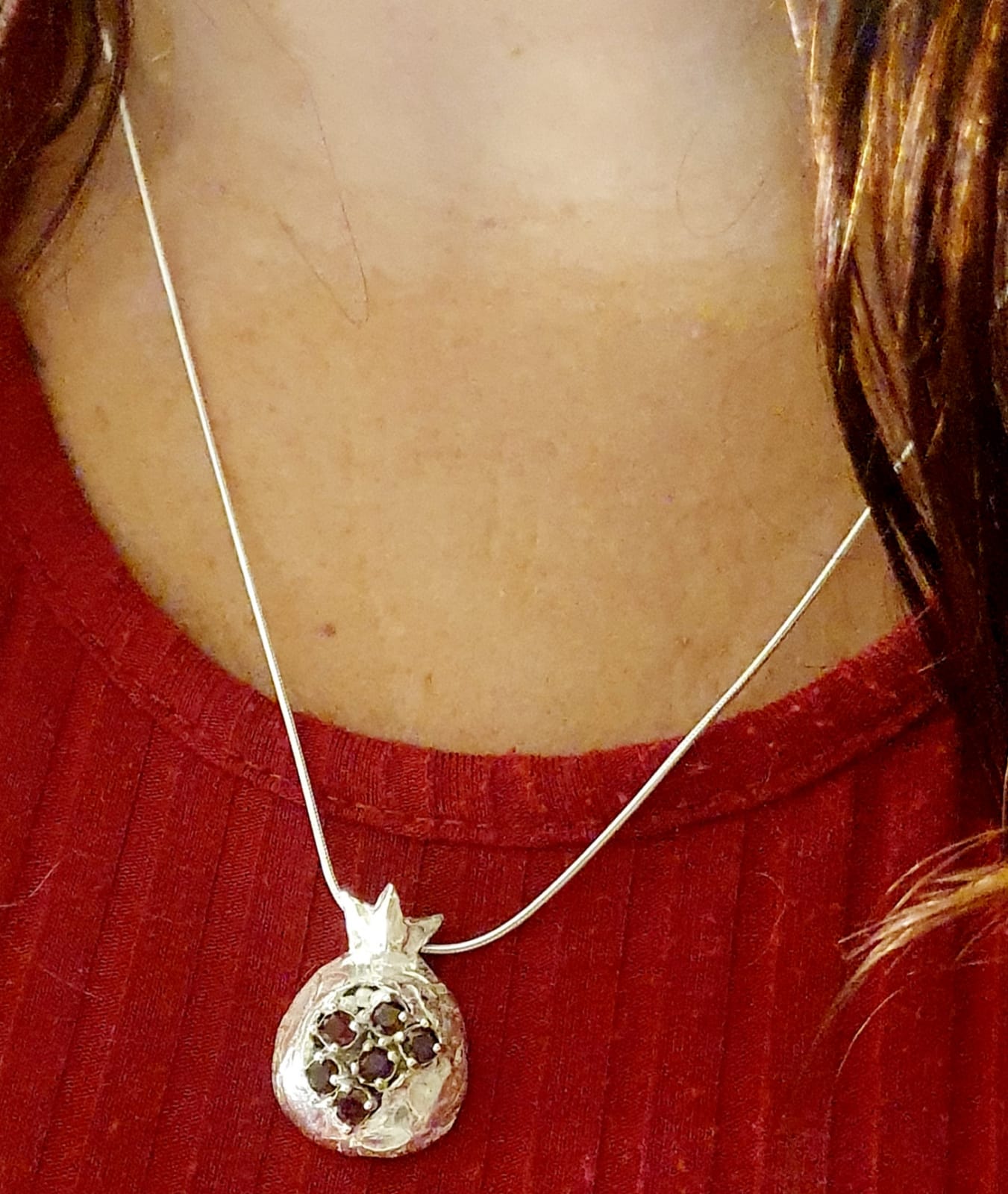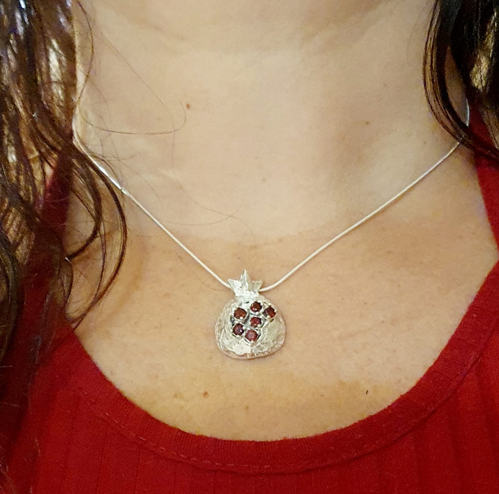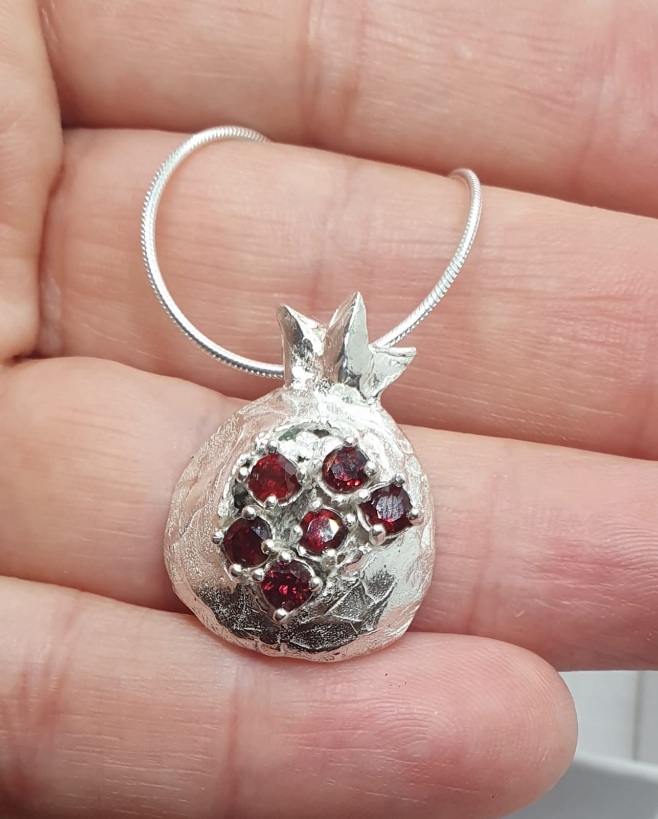 תליון כסף מפוסל בצורת רימון